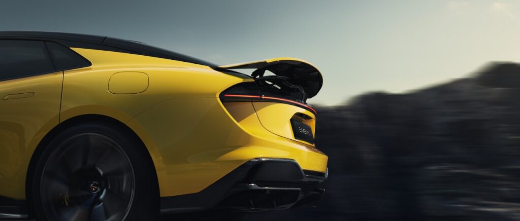 Emeya juga dilengkapkan dengan spoiler belakang aktif berbentuk dua lapisan yang memberi kelebihan downforce berjumlah 215kg untuk kestabilan kelajuan tinggi. Secara keseluruhan model ini mempunyai lapan ruang udara untuk melancarkan pergerakan udara, meningkatkan kecekapan aerodinamik dan membantu prestasi serta jarak pemanduannya. Pada masa yang sama ia membantu menyejukkan sistem brek, motor dan bateri.