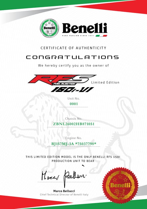 Pasaran motosikal segmen 150cc atau ‘supercub’ adalah antara yang menjadi tumpuan masa kini. Pengeluar motosikal berlumba-lumba memperkenalkan model terbaik daripada mereka ke pasaran Malaysia dan Asia umumnya. Antara model pencabar terbaru ialah Benelli RFS150i. Peminat ‘supercub’ sekarang menginginkan jentera yang hebat serba-serbi, bukan hanya kuasa enjin tetapi juga reka bentuknya. Kumpulan atau kelab motor terutamanya yang mengikut jenama atau model sesebuah motosikal berkembang dengan kewujudan model-model motosikal sebegini. Benelli RSF 150i tidak ketinggalan sama untuk memeriahkan pasaran tempatan dengan pelancarannya dan segera menjadi saingan kepada model ‘supercub’ lain. Selepas memperkenalkan model Benelli RFS 150i SE tidak lama dahulu, Benelli telah melancarkan model BENELLI RFS 150i LIMITED EDITION yang kelihatan lebih garang. Edisi terhad ini hadir dengan skema warna bendera Itali. Hanya sebanyak 5,000 unit akan dijual dengan nombor siri edisi terhad khas yang dipaparkan pada motosikal. Pembeli akan menerima sijil pemilikan sah yang mengandungi tandatangan Mr. Marco Bellucci, pengarah teknikal utama Benelli.