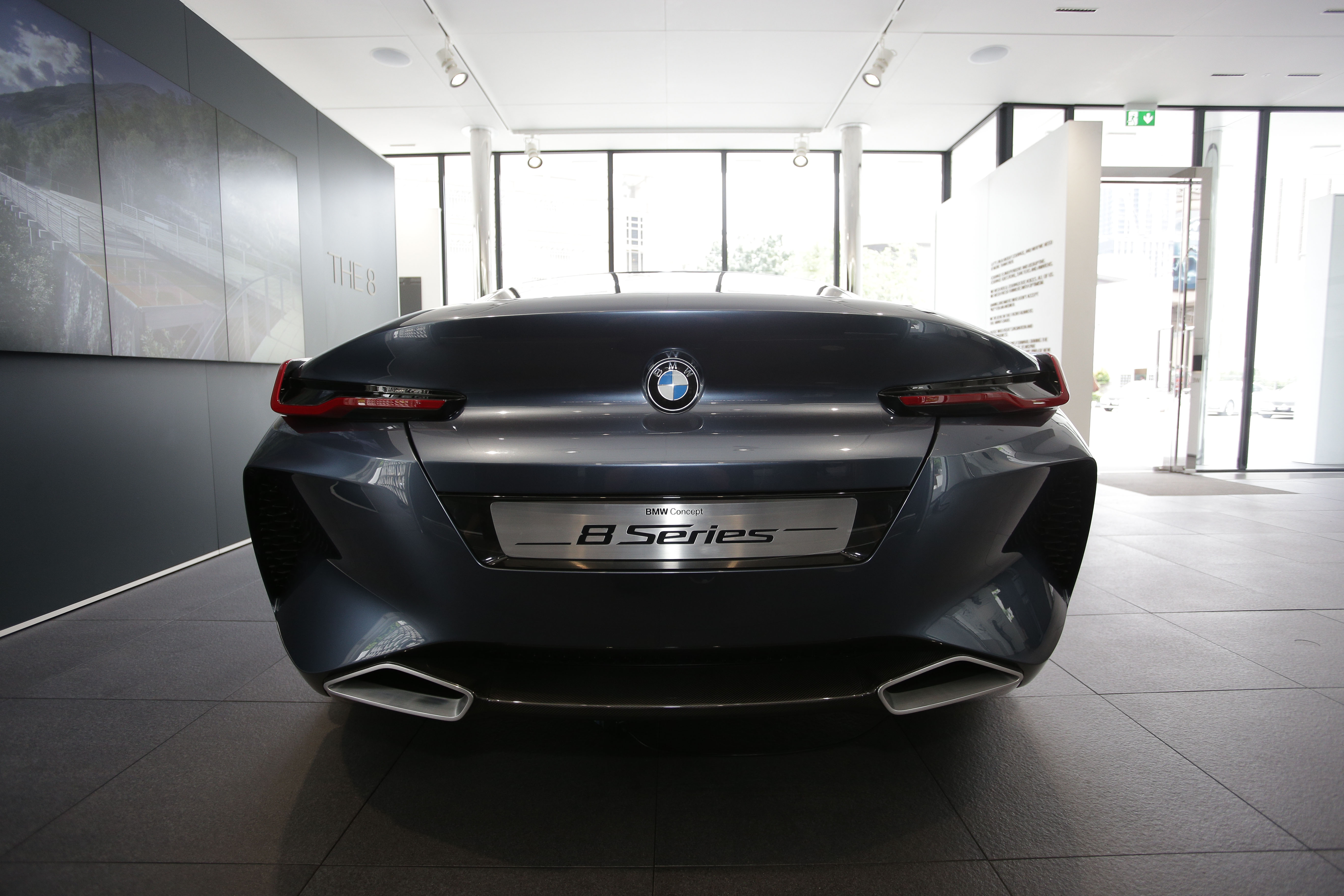 Bahagian belakang saling dipengaruhi oleh volum dan garis-garis yang membentuk seksyen belakang kereta ini. Arca roda menyerlahkan kuasa dinamik dan pacuan roda belakangnya. Ruang tempat duduk dan bahagian belakang yang lebar dapat dilihat dengan jelas pada BMW Concept 8 Series.