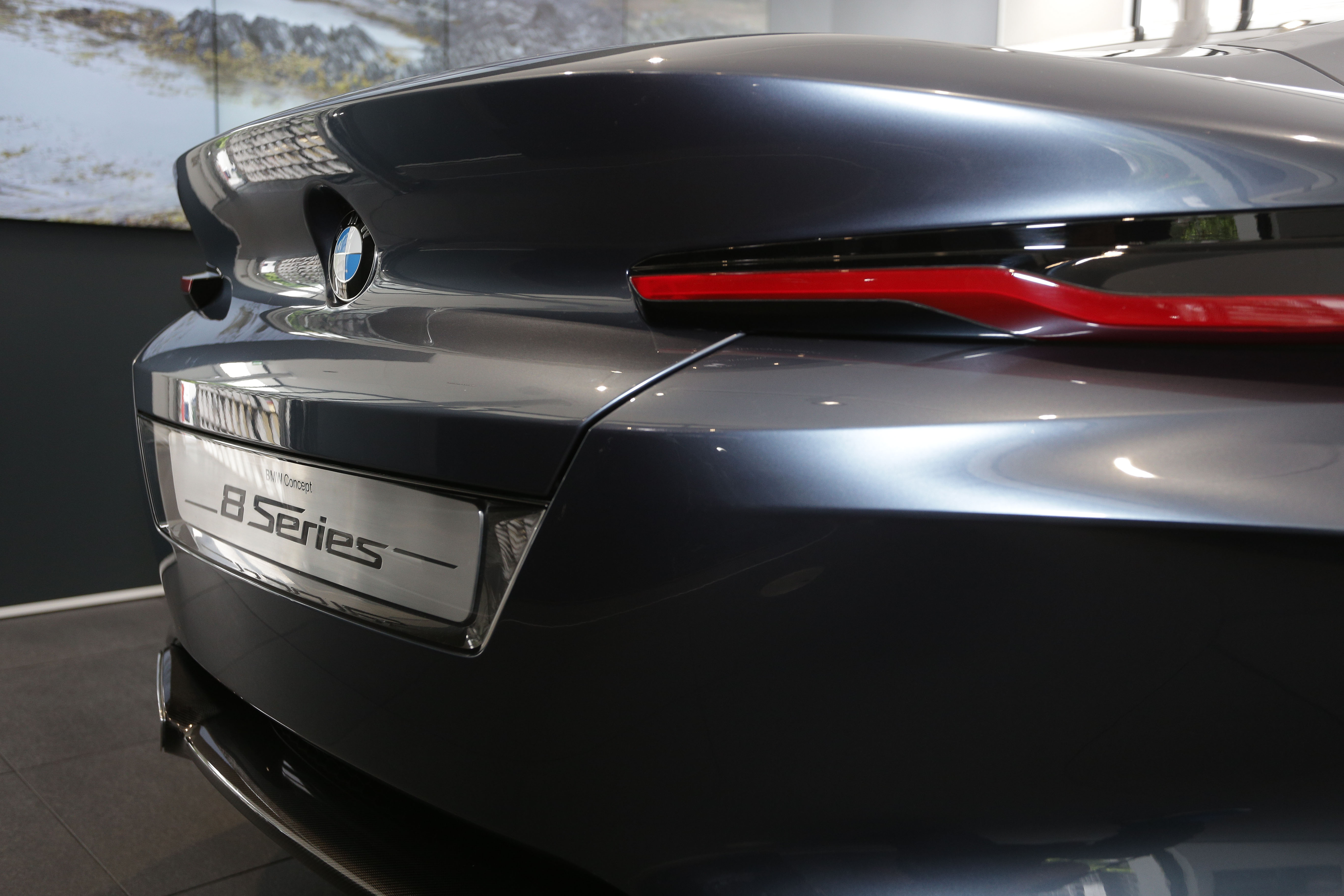 Lampu belakang yang nipis menjalar hingga ke bahagian sisi BMW Concept 8 Series dan menjadi penyambung di antara bahagian belakang dan sisinya. Lampu berbentuk huruf L itu seakan-akan terkeluar dari bahagian belakangnya. Ia membuatkan jentera ini kelihatan lebih lebar dan maskulin di atas jalan. Manakala bentuknya yang nipis memberikan gayaan yang ultra sporty dan moden