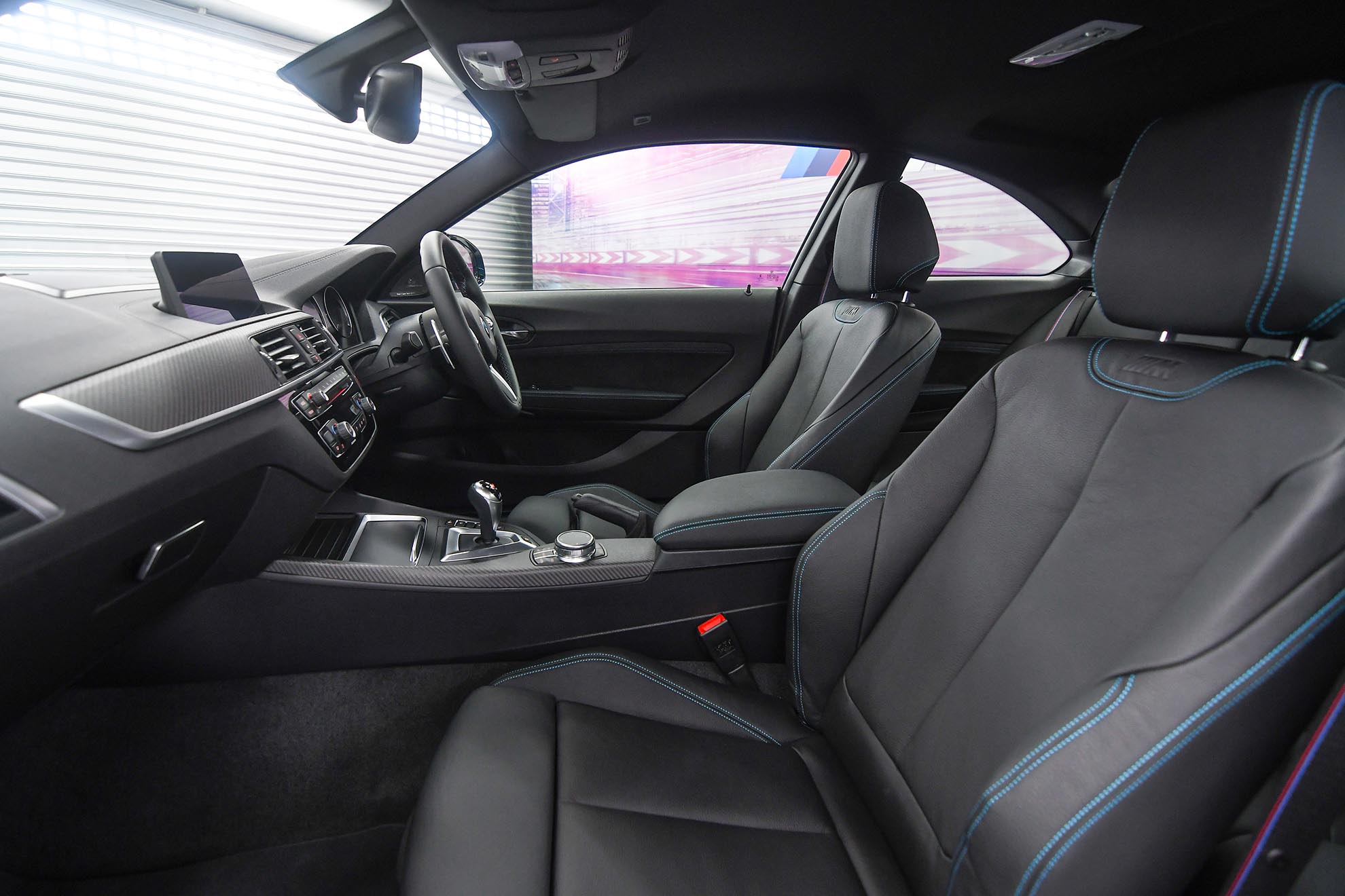 Bahasa reka bentuk eksterior BMW M2 Competition yang menawan juga dicerminkan di ruang dalam. Sebaik sahaja pemandu memasuki kenderaan ini, lencana M2 Competition yang tersendiri dapat dicam di ambang pintu kenderaan berkenaan. Kemudian, pemandu boleh menyelesakan diri mereka di atas kerusi M Sport yang membawakan iluminasi logo M2 pada tempat sandar, dan pengguna dapat menyaksikan sulaman klasik ‘M’ yang diterapkan pada tali pinggang keledar kenderaan ini. Bukan itu sahaja, penyaman udara dua zon juga ditawarkan sebagai standard untuk keselesaan maksimum buat para penumpang. Kluster instrumen dengan Black Panel Technology terletak di jarak yang sesuai untuk dilihat oleh pemandu berhampiran dengan stereng berkulit ‘M’ didatangkan dengan butang M1 dan M2 yang menawarkan akses langsung ke atas mod pemanduan Comfort dan Sport yang telah diprogramkan. Butang mula/henti yang berwarna merah pula menyinambungkan warisan sukan permotoran jentera alaf baharu ini.