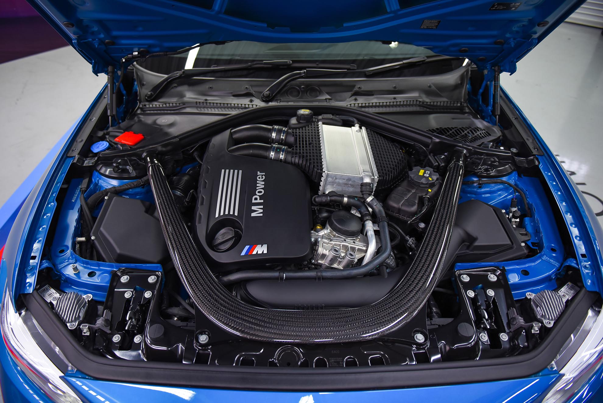 Terletak pada trim interior gentian karbon ialah sistem maklumat hibur dalam bentuk paparan ‘Navigation system Professional’ bersaiz 8.8” dengan skrin sesentuh. Ia hadir dengan jam randik khas, BMW M Laptimer untuk menawarkan telemetri sukan permotoran yang diperkayakan buat para pemandu. Sistem pembesar suara HiFi Harman Kardon pula dapat mengiringi pemandu dengan penawaran hiburan bunyi yang sempurna. Di samping itu, tahap kemudahan juga dinaik taraf menerusi penambahan Comfort Access dan tempat sandar kerusi belakang dengan pembahagian 60:40.