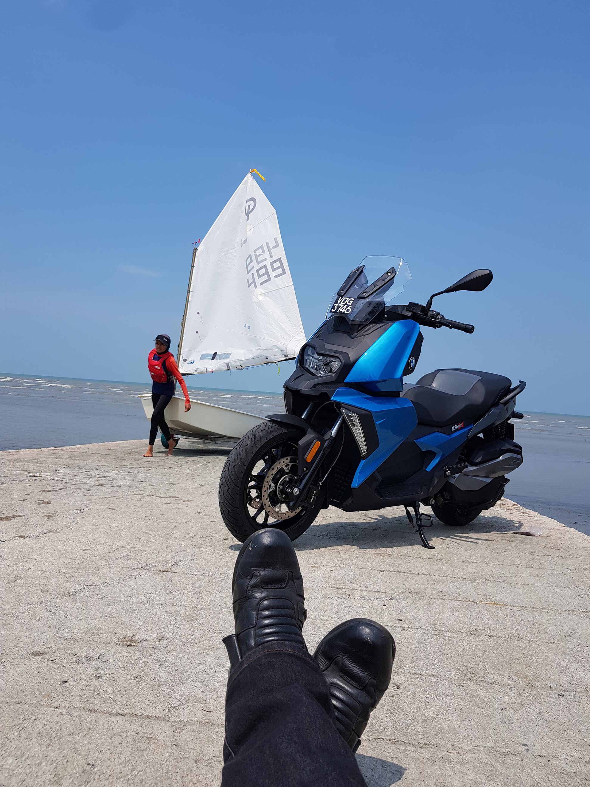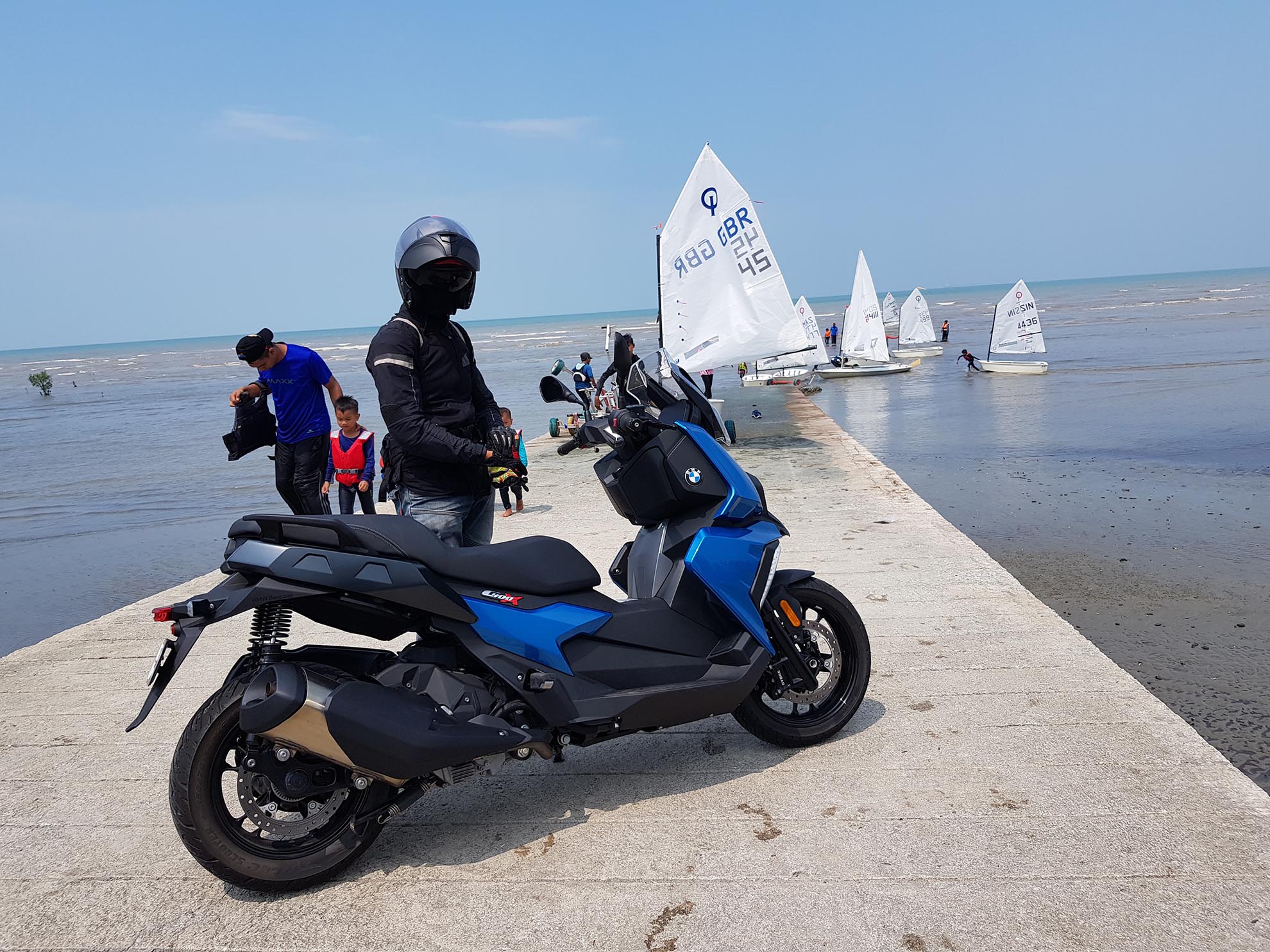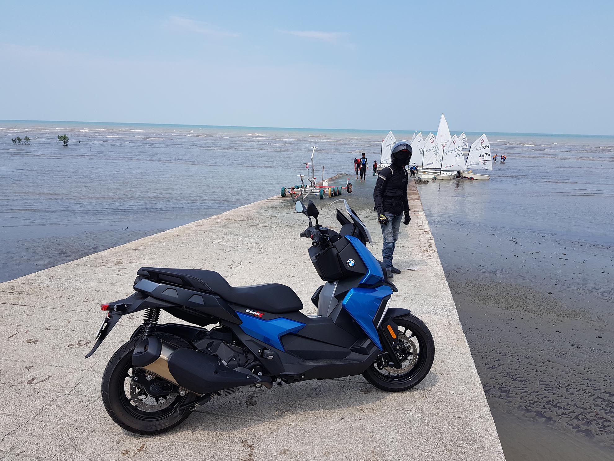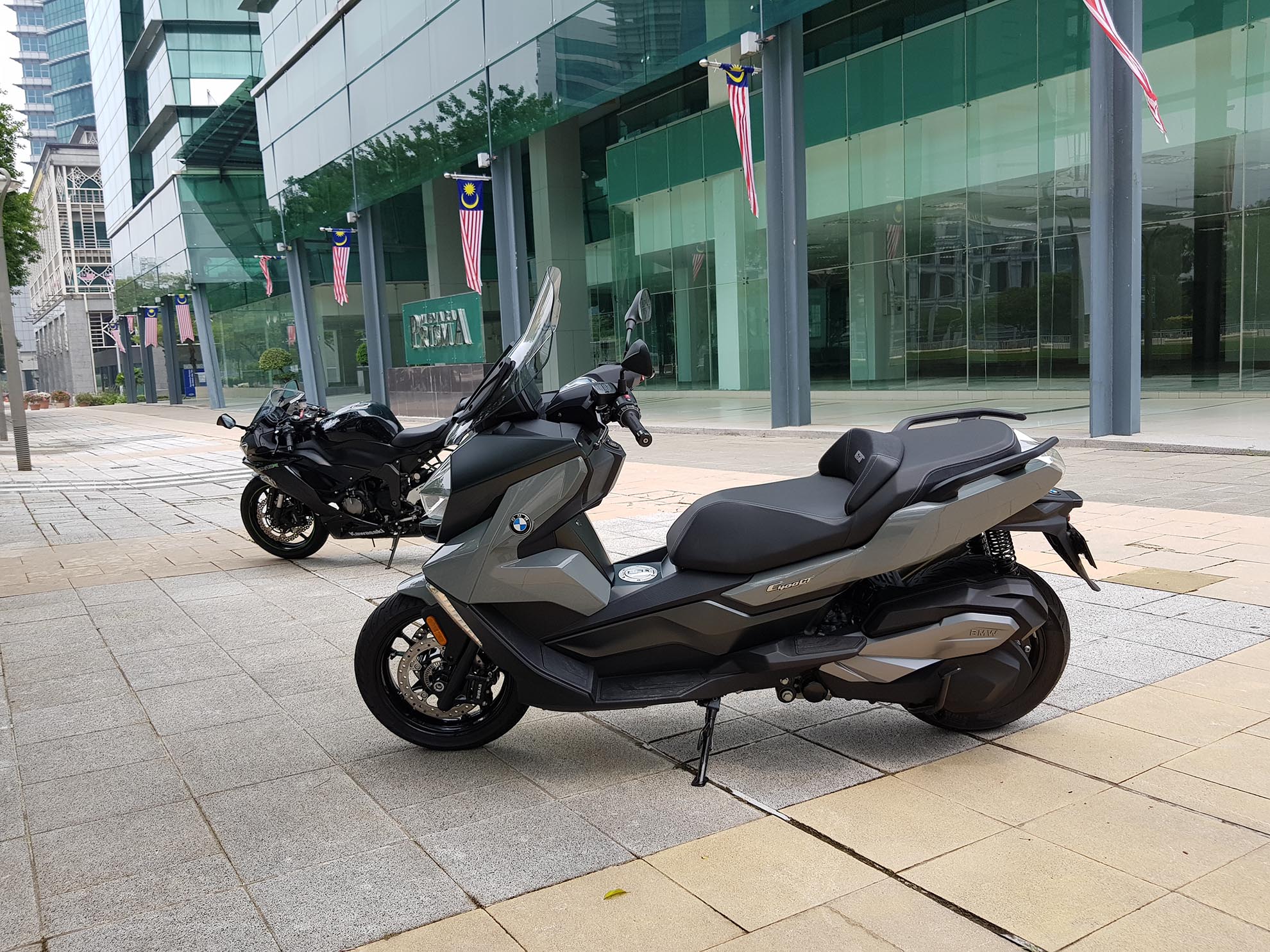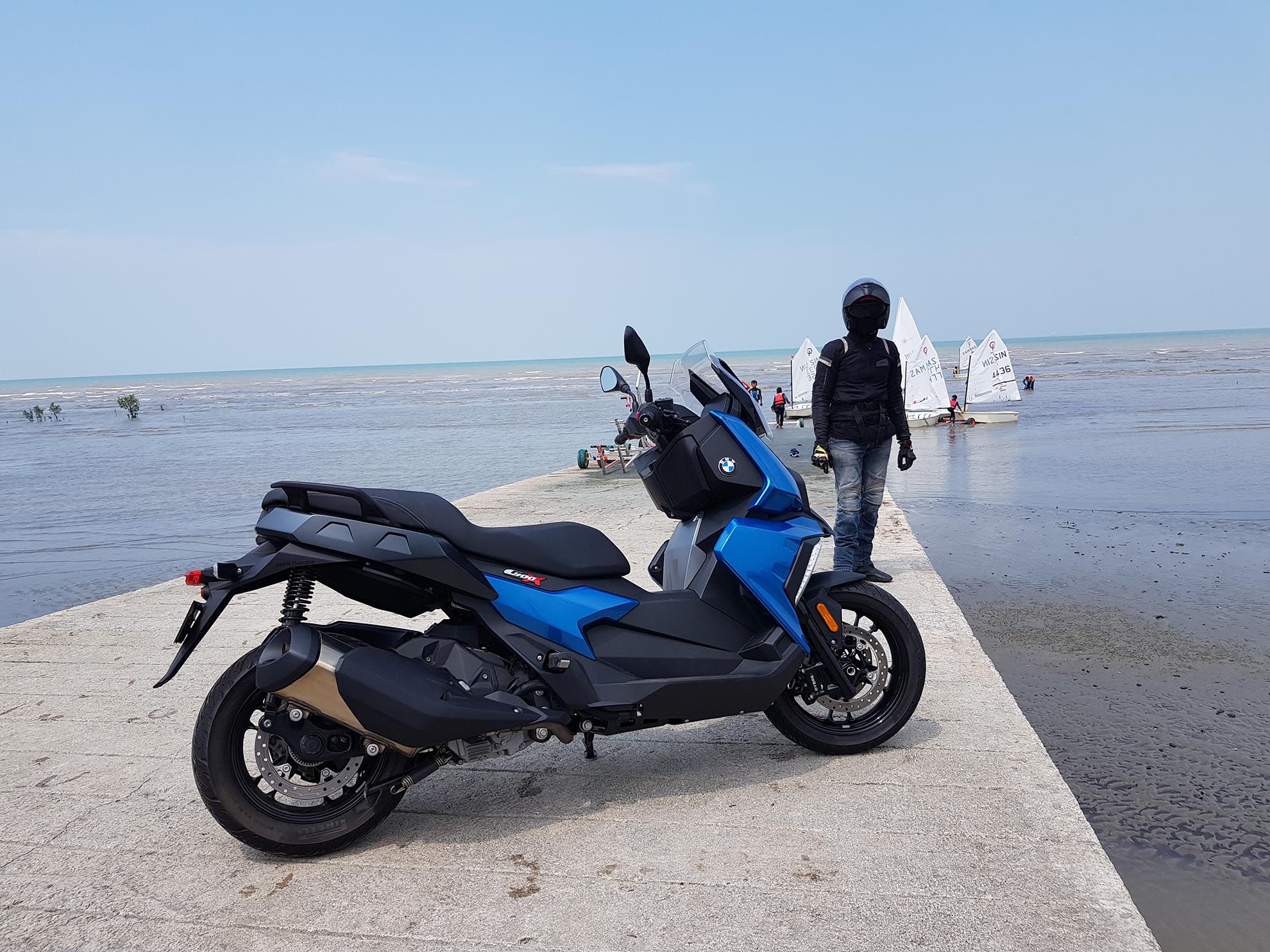 Kali ini pihak ENJIN DOTcom berpeluang merasai sendiri skuter model baharu daripada BMW iaitu C 400 X dan C 400 GT dimana reka bentuk BMW C 400 X lebih kepada aktiviti lasak dan aktif sementara BMW C 400 GT lebih kepada kelincahan di bandar.BMW mengeluarkan 2 model iaitu C 400 X dan C 400 GT yang reka bentuknya adalah sedikit berbeza. Berbalik kepada model BMW C 400 X ini yang kami uji tunggang, abang Mr. Stick akan menunggangnya di sekitar bandaraya Kuala Lumpur dan juga sepanjang pantai Morib. Jika kita biasa dengan jenama skuter dari Jepun khasnya, kemungkinan kita akan tertanya kenapa skuter BMW C 400 X ini agak kasar enjinnya. Pada kami ia pada mulanya menganggu fokus semasa menunggang tapi lama kelamaan ia dapat dihadam dengan keasyikan melayan skuter ini. BMW C 400 X ini harus ditunggang secara aktif, bukan terlalu lembut seperti skuter keluaran Jepun. Mungkin BMW ada sebab yang tersendiri membuatnya sedemikian. Semakin jauh jarak perjalanan kita menunggang, baru kita faham karekter sesebuah motosikal itu dan ini adalah penting agar gaya dan tunggangan kita tidak membosankan sepanjang perjalanan. Karakter ini ada pada BMW C 400 X dan GT ini.