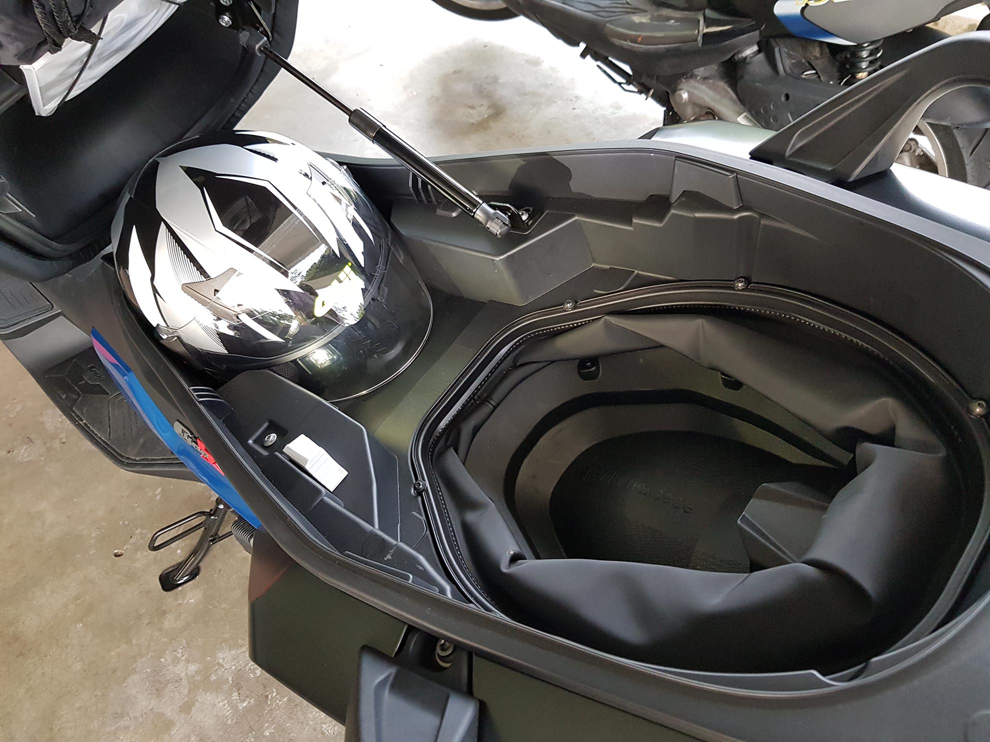 Penggunaan petrol bagi skuter ini adalah sebanyak 3.5 liter / 100km. Setelah seharian menunggang dengan campuran jalan-jalan di bandar dan sesekali memecut di lebuh raya, komputer on-board melaporkan penggunaan petrol sebanyak 70 mpg. Selepas melakukan beberapa perbandingan dan perbincangan yang teliti, admin harapkan penggunaan bahan bakar ini dapat diperbaiki kerana dengan tangki penuh 12.5 liter Mr.Stick mencatatkan jarak sejauh lebih kurang 320 km… Bagi model BMW C 400 GT, reka bentuknya hampir sama dengan BMW C 400 X kecuali saiz dan rekaannya lebih kemas untuk disesuaikan bagi perjalanan jarak jauh dan antara bandar. Tetapi ruang tempat simpanan di bahagian bawah tempat duduk BMW C 400 X dan GT ini agak kecil berbanding dengan model-model jenama lain. Mungkin BMW mengambil maklum untuk pasaran Asia ini, ruang simpanan barang bagi sebuah skuter adalah penting kerana orang Malaysia khasnya suka bawa segala benda dan simpan segala barang di ruang simpanan barang itu dan ini adalah kenyataan. Jika model BMW C 400 X lebih fokus ke arah adventure dan banyak pilihan aksesori, ia pasti akan menjadi laku keras di pasaran. Menjadi ikutan masa kini, motosikal adventure menjadi pilihan untuk penggemar motosikal untuk melancong. Admin lebih tertarik dengan model GT ini kerana reka bentuknya lebih kemas dan sedap mata memandang. Dari segi prestasi, ia sama sahaja dengan model X. Terpulang kepada selera masing-masing, anda kena mencuba sesuatu yang berlainan dan yang paling penting diharap BMW dapat mengatasi masalah kos penyelenggaran skuter BMW yang dilaporkan terlalu tinggi terutamanya pada model sebelum ini. Skuter telah menjadi model untuk kegunaan semua lapisan masyarakat dan sejenis pengangkutan mudah dan ringkas selain model moped atau cub yang mendominasi pasaran motosikal selama ini. Percayalah, ia menyeronokkan tak kira ke mana tujuan anda menunggang yang pasti skuter anda lain dari yang lain di pasaran kerana ia berjenama BMW.