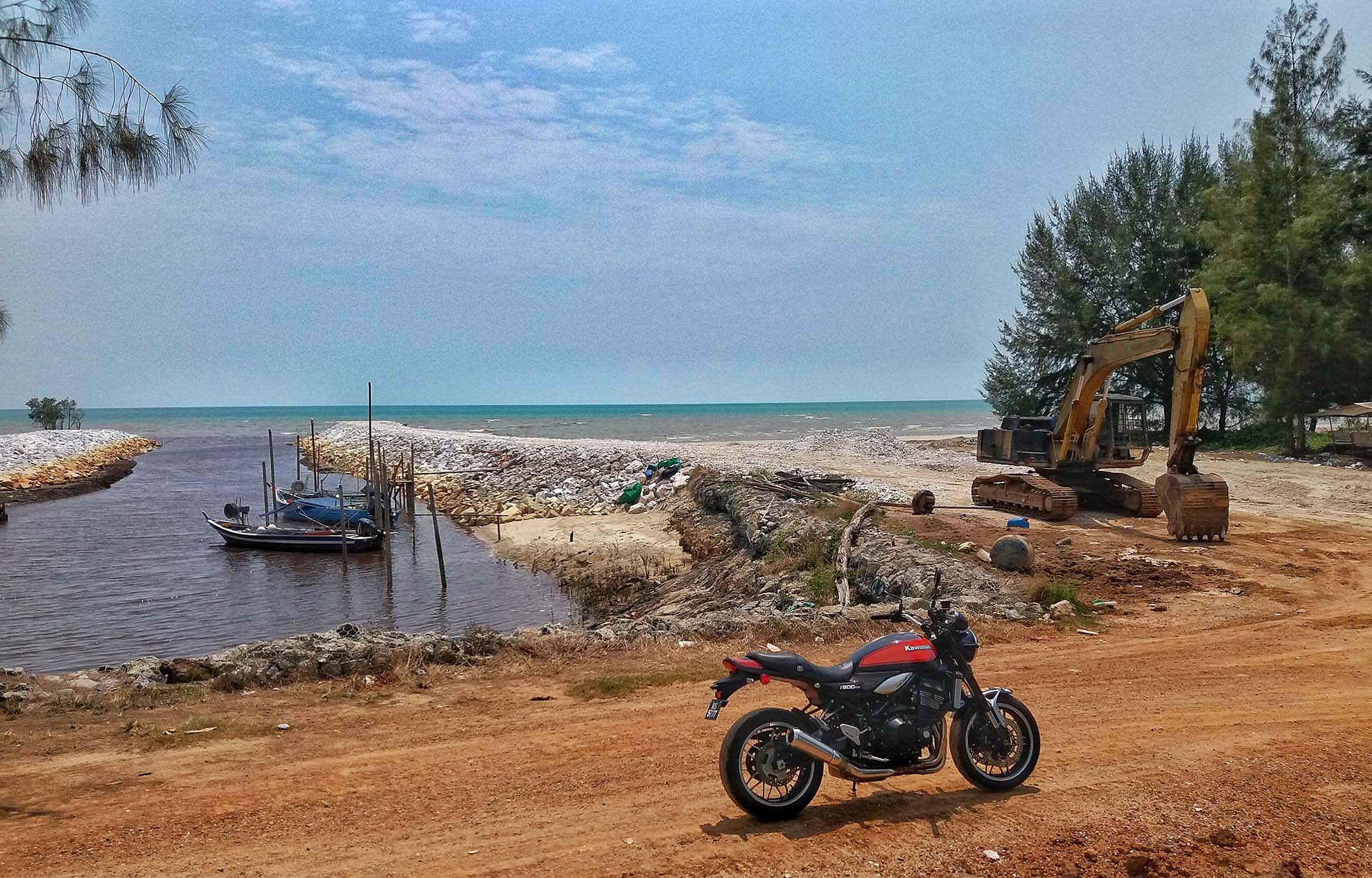 Minggu lepas Mr. Stick berpeluang membuat perjalanan menyusuri jalan pesisir pantai Selangor bermula dari Dataran Morib, yang kebetulan ada program permotoran di sana, hingga ke Bagan Lalang. Terima kasih kepada Kawasaki Motors Malaysia yang sudi meminjamkan model Z900 serba baharu yang telah diperkenalkan pada tahun lepas iaitu Kawasaki Z900 RS. Jentera ini memang sesuai ditunggang santai. Reka bentuk retro modennya nampak bersahaja tetapi cantik, “berseni” bak kata orang. Kuasa enjinnya amat menyakinkan untuk kita perah pada bila-bila masa sahaja. Biar pun jarak perjalanan kali ini dekat, tetapi ia cukup menarik kerana disepanjang laluan, kita berpeluang melawati serta mengabadikan gambar-gambar pantai yang terdapat di kawasan ini. Jika kita berpeluang, singgahlah dan diharap tempat-tempat ini dapat dimajukan dengan lebih teratur beserta kemudahan untuk orang ramai beriadah.