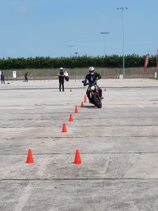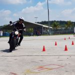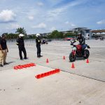 Sesi latihan praktikal terbahagi kepada 5 bahagian. Peserta diberi pendedahan kepada cara yang betul dalam mengawal pergerakan badan ketika sesi latihan pergerakan membuat nombor 8, mengelak rintangan, mengawal motor di dalam pergerakan bulatan dan ujian brek di kawasan yang berpasir atau licin. Apa yang saya nampak disini, walaupun ada yang sudah agak lama menunggang motosikal berkuasa tinggi, mereka belum tentu boleh mengawal motosikal dengan baik ketika latihan praktikal ini.