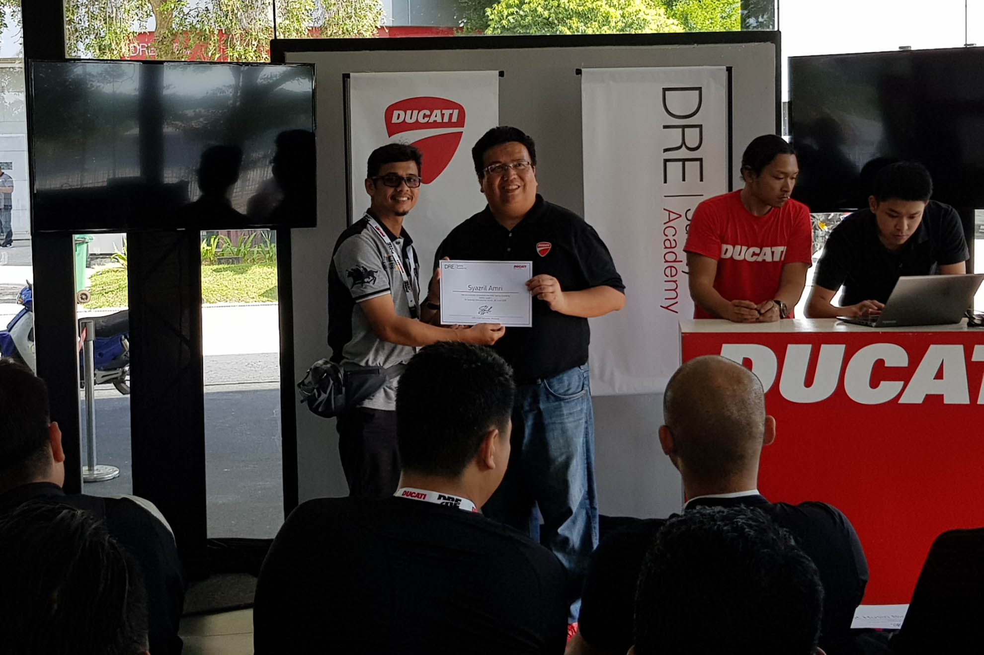 Ini adalah kursus peringkat pertama Ducati yang dijalankan di Malaysia di mana kursus sebelum ini telah dijalankan di negara jiran kita, Thailand. Apa yang lebih menarik, kursus ini dikendalikan sendiri oleh 5 orang pelatih dari Malaysia iaitu Haizal Omar, Remon Azrem, Zaid Apandi, Lee Ching Hooi dan Rusydi Razali yang telah mendapat pengiktirafan dari Ducati Asia. Difahamkan kesemua pelatih ini berjaya melepasi ujian dan saringan yang amat ketat dari pihak Ducati Asia.