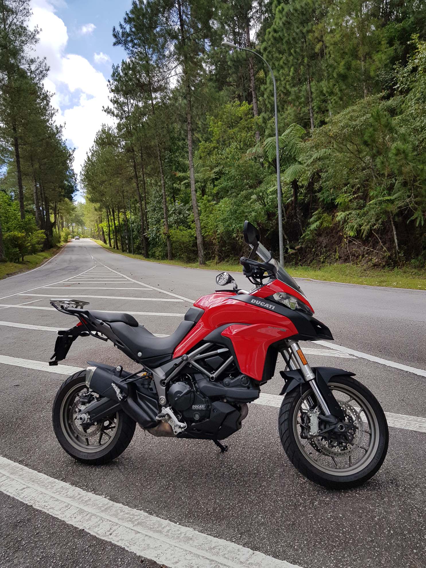 Selepas melalui perjalanan jauh dan agak santai, keesokannya admin cuba menunggang Ducati Multistrada 950 ini secara agresif, uji main “koner” katanya. “MY LAST”. Apa lagi, jom kita ke Genting Highland. Laluan Lebuh Raya Karak ni agak terkenal bagi bikers melayan “koner”. Selepas Tol Gombak, kita berada di acara pemanas badan untuk sesi melayan “koner”. Ketika ini Ducati Multistrada 950 tiada masalah langsung. Walaupun sesekali “angle” yang diambil agak sedikit agresif, ia mengikut sahaja semua rentak penunggang. Sampai di Hentian Genting Sempah, admin berhenti seketika untuk memeriksa tayar dan apa-apa yang patut sebelum memulakan pendakian kerana kebanyakan selekoh naik ke Genting Highland agak “tight”. Sampai di puncak, admin duduk sebentar memerhatikan keseluruhan Ducati Multistrada 950 ini. Puas hati dan tiada komen lebih kerana bagi admin yang bersusuk tubuh kecil ni (orang katalah), tiada masalah untuk melayan semua “koner”. Admin boleh merasakan ia ringan dan mudah dikawal, tak terasa seperti menunggang motosikal berkuasa besar pula. Gabungan sistem brek, suspensi, kuasa enjin dan reka bentuknya yang mesra pengguna merupakan resepi utama yang boleh admin katakan, “MY EVERYTHING”.