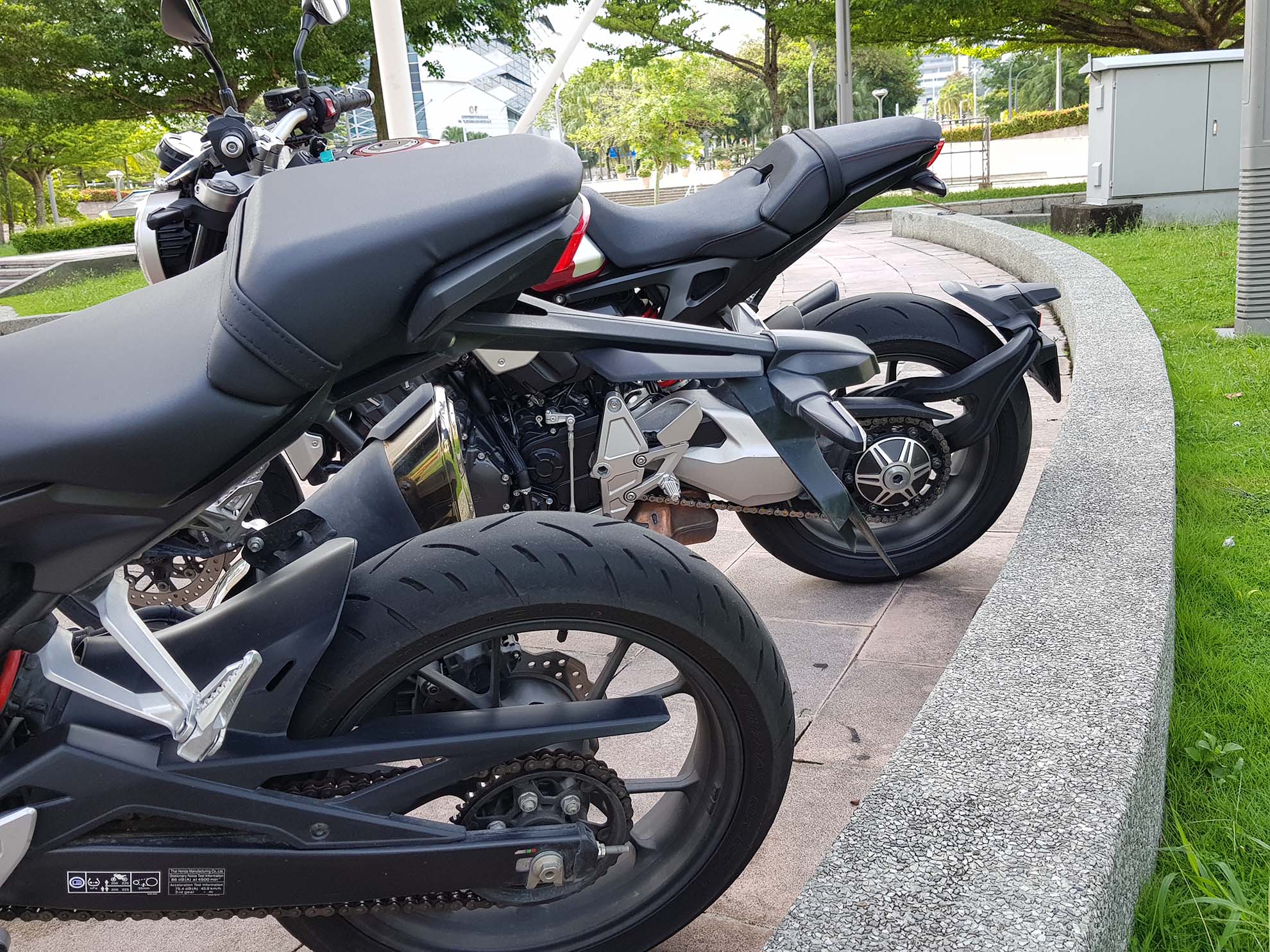 Kini admin berpeluang untuk menguji dan melihat keupayaan sebuah lagi saingan dalam pasaran 250cc iaitu Honda CB250R, ‘naked bike’ yang moden. Kebetulan kami dapat menguji bersekali dengan abang longnya, CB1000R yang mempunyai reka bentuk hampir sama. Baiklah, berbalik kepada motosikal CB250R ini, ia agak ringan dan mudah ditunggang serta mudah dikawal. Posisi menunggangnya agak tegak dan sentiasa memudahkan pandangan dalam perjalanan.