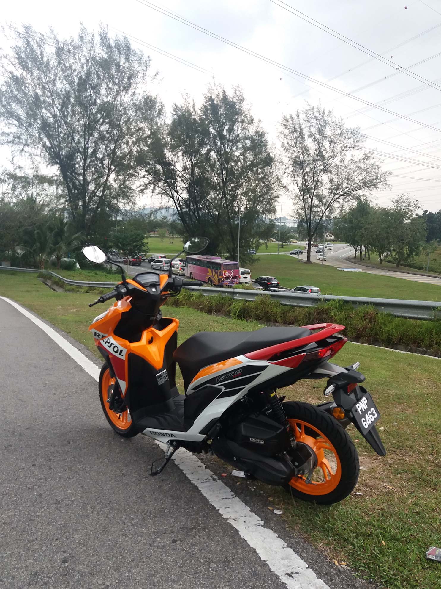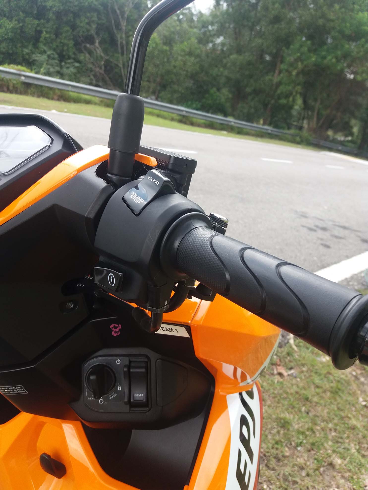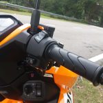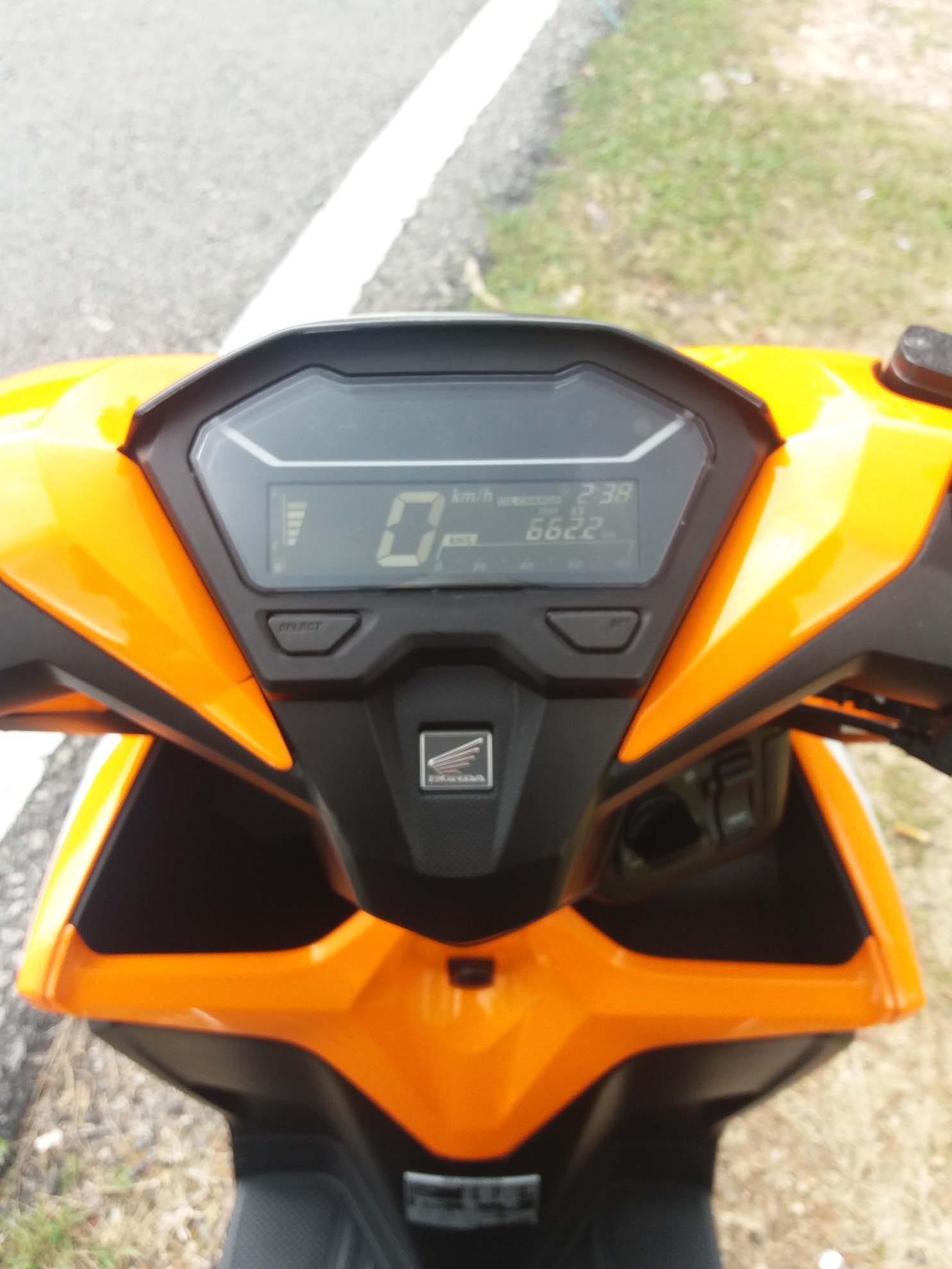 Ok, berbalik pada Honda Vario ini. Sesiapa yang biasa dengan motosikal besar dan bukan skuter atau cub, akan merasa janggal dengan kedudukan hendal skuter ini yang agak rendah sedikit ke bawah. Tetapi ini bukan suatu masalah kerana ia hanya memerlukan penyesuaian diri sahaja. Bagi penunggang yang memiliki fizikal yang tinggi, kaki yang agak panjang akan berada terlalu dekat dengan hendal dan ini mungkin akan menimbulkan gangguan terutamanya ketika membelok dan berhenti mengejut. Bagi yang berbadan comel seperti Mr. Stick, tiada masalah.