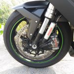 Motosikal ZX10R SE 2019 ini juga dilengkapi dengan sepasang brek Brembo M50 Monobloc (Dual Semi Floating Disc) dengan cakera bersaiz 330 mm di hadapan, ditambah dengan KIBS (Kawasaki Intelligent Brake System) yang membolehkan kita ‘trail-brake’ secara optimum semasa mengambil selekoh dibantu oleh sistem KCMF (Kawasaki Cornering Management Function) yang memastikan tayar di belakang tidak tergelincir atau ‘slide’ semasa menunggang di selekoh dengan agresif.