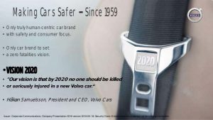“Semua teknologi keselamatan automotif pada  kenderaan bergantung kepada pengunaan tali pinggang keselamatan sebagai faktor keselamatan yang utama.Menjadi salah tanggapan yang selalu dipercayai ialah bahawa beg udara dan struktur kerangka kenderaan semata-mata cukup untuk memberikan perlindungan kepada penumpang, ini sama sekali tidak tepat” jelas Pengarah Urusan Volvo Car Malaysia, Nalin Jain.