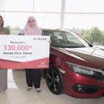 ‘’Saya sentiasa menjadi peminat Honda. Sebelum membeli Civic ini, saya sebelum ini memiliki Honda Stream. Saya kagum dengan ciri-ciri premium dan inovatif terdapat di Honda Civic yang menambah lagi keseronokkan untuk perjalanan harian saya. Saya telah menempah kereta awal tahun ini dan telah menunggu untuk menerima kereta. Tetapi, untuk menjadi pemilik Civic 130,000 benar-benar kejutan yang mengembirakan! Saya sangat gembira dengan Civic saya ini dan tidak sabar untuk membawanya ke jalanraya, “kata Cik Fatihah yang hadir di majlis itu untuk menerima kereta barunya.
