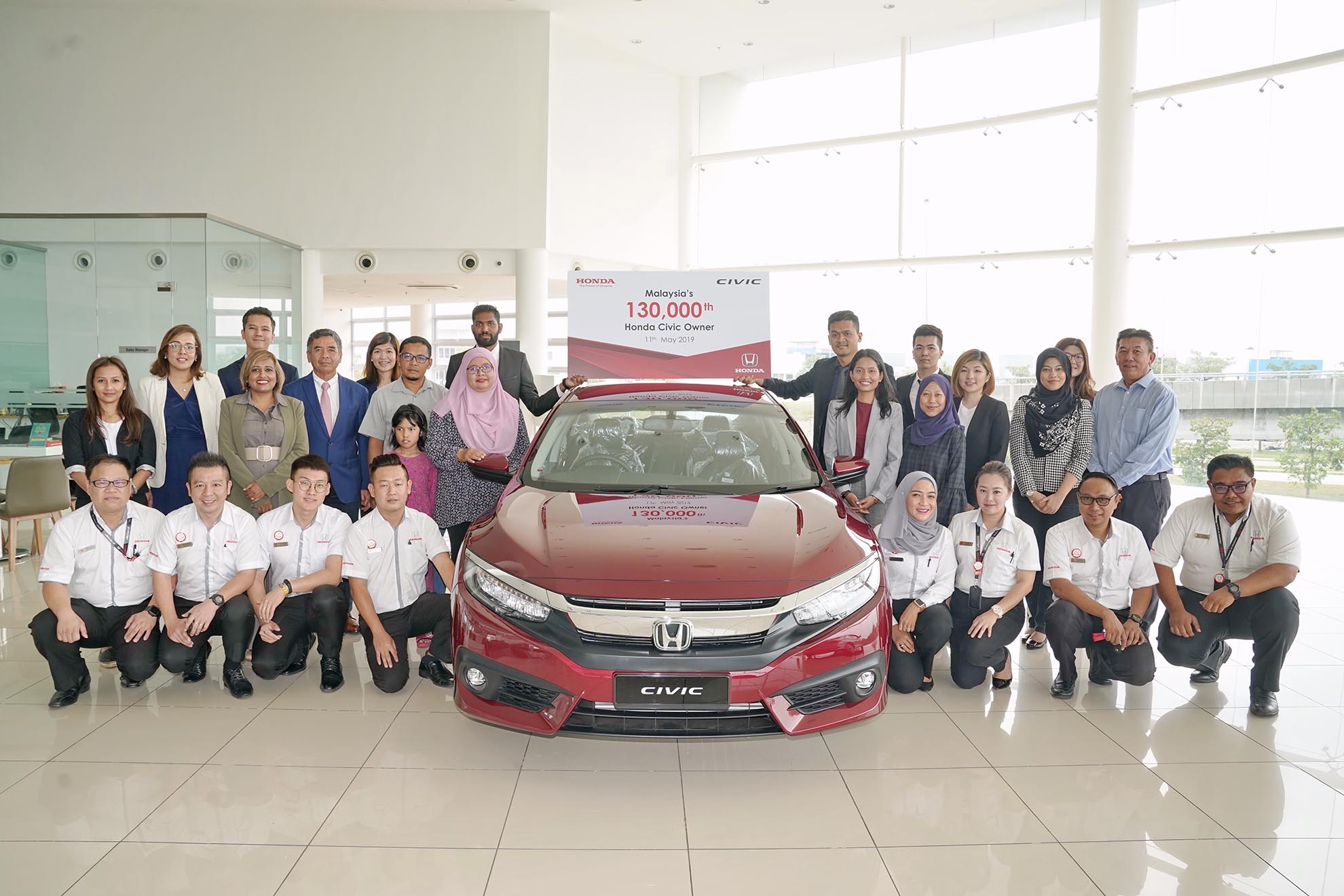 Naib Presiden Honda Malaysia, Cik Jahabarnisa Haja Mohideen berkata pada majlis penyerahan itu, “Terima kasih dan terima kasih yang sangat besar kepada semua 130,000 pelanggan Honda Civic kami di Malaysia. Sokongan dan kepercayaan mereka terhadap jenama Honda telah membolehkan model kami mencapai kedudukan kepimpinan segmen termasuk Civic yang mengetuai segmen C. Di Malaysia, Civic adalah sinonim dengan jenama Honda dan telah memenangi banyak hati di sini. Ia secara konsisten telah disokong oleh rakyat Malaysia. Walaupun terdapat batasan unit jualan pada awal tahun, Civic terus menguasai segmen C dengan bahagian pasaran tertinggi pada 77% . Dengan model terkini, termasuk Civic yang popular, kami percaya kami berada di landasan yang betul untuk mencapai jualan kami untuk tahun 2019. Kami kini kekal sebagai No.1 dalam Segmen Bukan Negara dan No.2 dalam Jumlah Keseluruhan Industri Jumlah (TIV) kedudukan. “