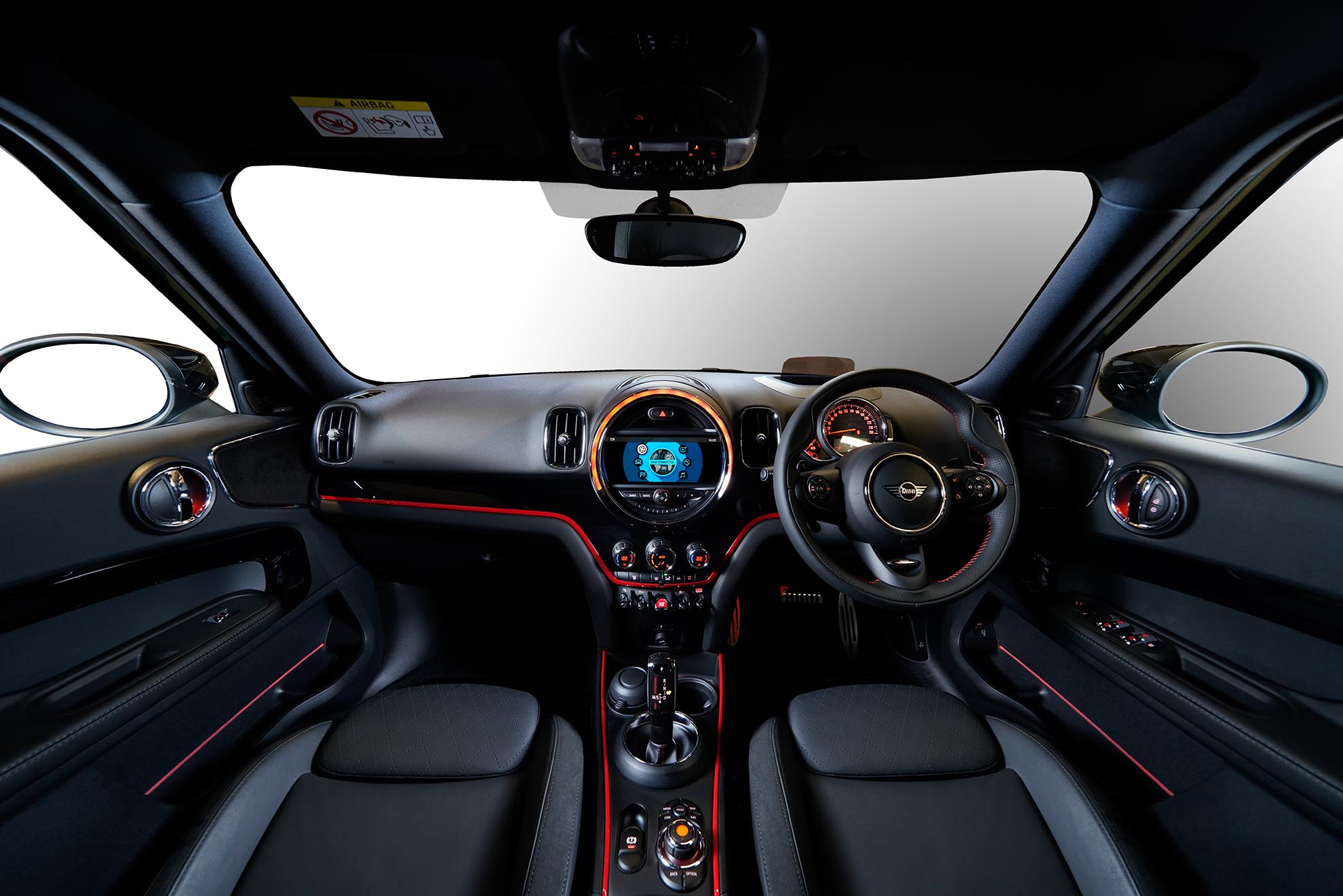 Bahasa reka bentuk pada ruang interior kedua-dua varian ini memperlihatkan sofistikasi dengan tema hitam yang dikekalkan olehnya. Material bumbung dilitupi dengan Antrasit, serta Kerusi Sport pula bermaterialkan Leather Cross Punch yang mewah dalam warna Carbon Black. Sentuhan sofistikasi yang terakhir ditawarkan melalui Permukaan Interior John Cooper Works dalam warna Piano Black.