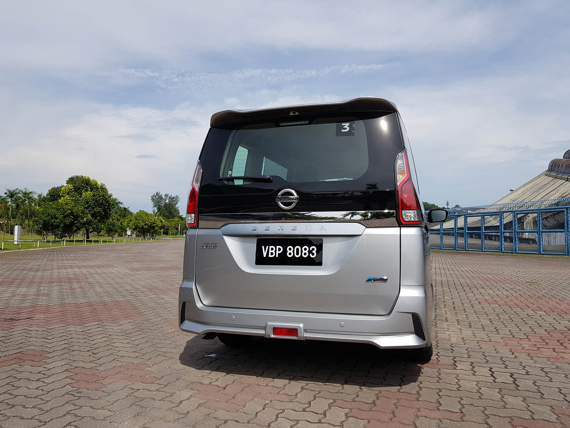 Kalau kita tengok dari luaran, Nissan Serena ini akan kita dapati rekabentuknya tampak elegan dan sporty. Nissan Serena baharu ini dilengkapi dengan lampu projektor LED berkembar bagi memberikan penglihatan yang lebih jelas ketika memandu di waktu malam. Ciri tambahan yang amat membantu pemiliknya adalah pintu belakang berkembar di mana terdapat 2 cara pembukaan. Samada membuka separuh iaitu cermin belakang sahaja atau buka penuh. Pintu tepinya pula sekarang di lengkapi dengan sistem handsfree power sliding door. Kita boleh membuka pintu sisi dengan melalukan kaki kita pada sensor yang terletak di bahagian bawah pintu. Kalau dukung anak tak perlu lagi nak minta tolong orang untuk buka pintu.
