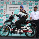 KUALA TERENGGANU, 25 Ogos 2019 – Seorang ibu tiga anak merupakan pemenang terbaru peraduan PETRONAS Sprinta Bonanza anjuran PETRONAS Lubricants Marketing Sdn Bhd (PLMMSB) bagi bulan Julai. Puan Norasyikin bin Mohd Salleh berasal dari negeri Johor memasuki peraduan dengan pembelian pakej minyak pelincir dan Tshirt Sprinta dari khemah PETRONAS di kejohanan PETRONAS Cub Prix di Pontian, Johor pada Julai lalu.