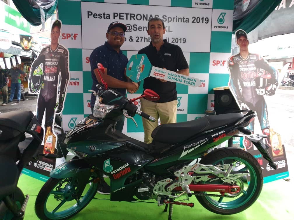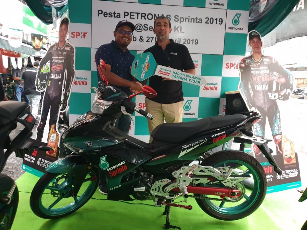 Sahrulnaim bin Sahrahan berasal dari Gombak, Kuala Lumpur yang merupakan pemenang pertama bulan Mac YAMAHA Y15ZR berkata,” Saya amat bersyukur dan berterima kasih kepada PETRONAS Sprinta kerana menganjurkan peraduan yang sangat menarik ini. Saya yang kebetulan memang harus menukar minyak pelincir membeli produk F500 untuk kegunaan motor kapcai saya. Memang menjadi kebiasaan, minyak pelincir PETRONAS Sprinta akan menjadi pilihan saya kerana terbukti membuat enjin saya terasa lebih ringan dan lancar”.
