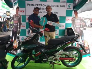 “Kami sangat berpuashati dengan sambutan yang diberikan kepada peraduan PETRONAS Sprinta Bonanza ini. Penjualan juga meningkat kerana minyak pelincir PETRONAS Sprinta semakin dikenali dan dipercayai kerana mutu dan kualiti nya memberi jaminan kepuasan kepada penunggang motosikal tanpa mengira model dan cc ,” kata Hardeep Singh , CEO PLMM yang menyampaikan hadiah bulanan YAMAHA Y15ZR di acara ‘Pesta PETRONAS Sprinta 2019’ yang berlangsung di kawasan utama aksesori dan servis motosikal di ibukota iaitu Jalan Sentul.