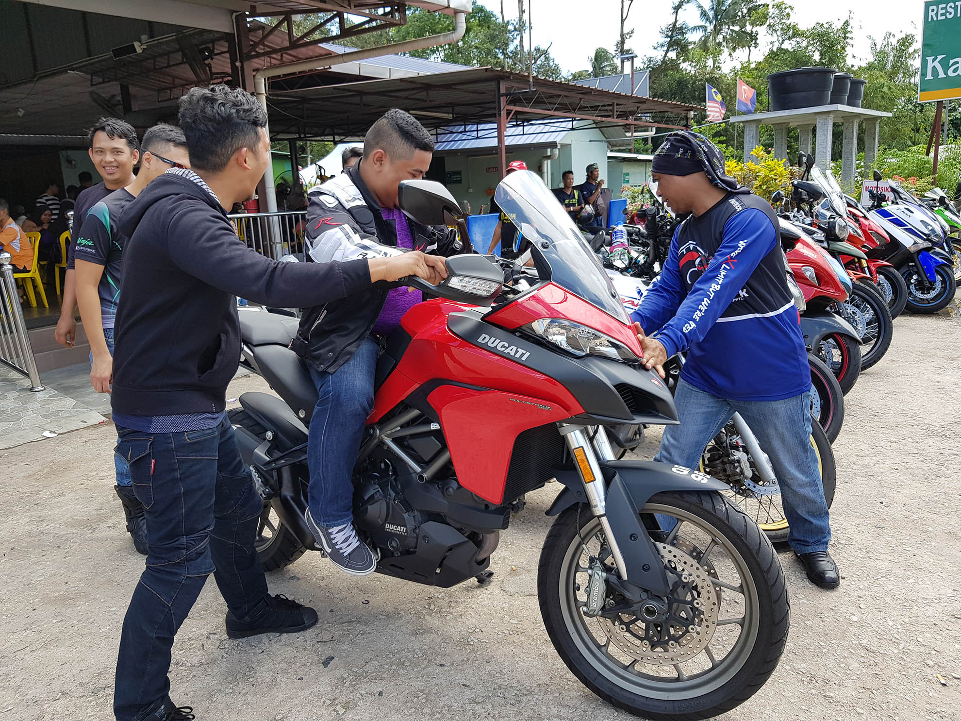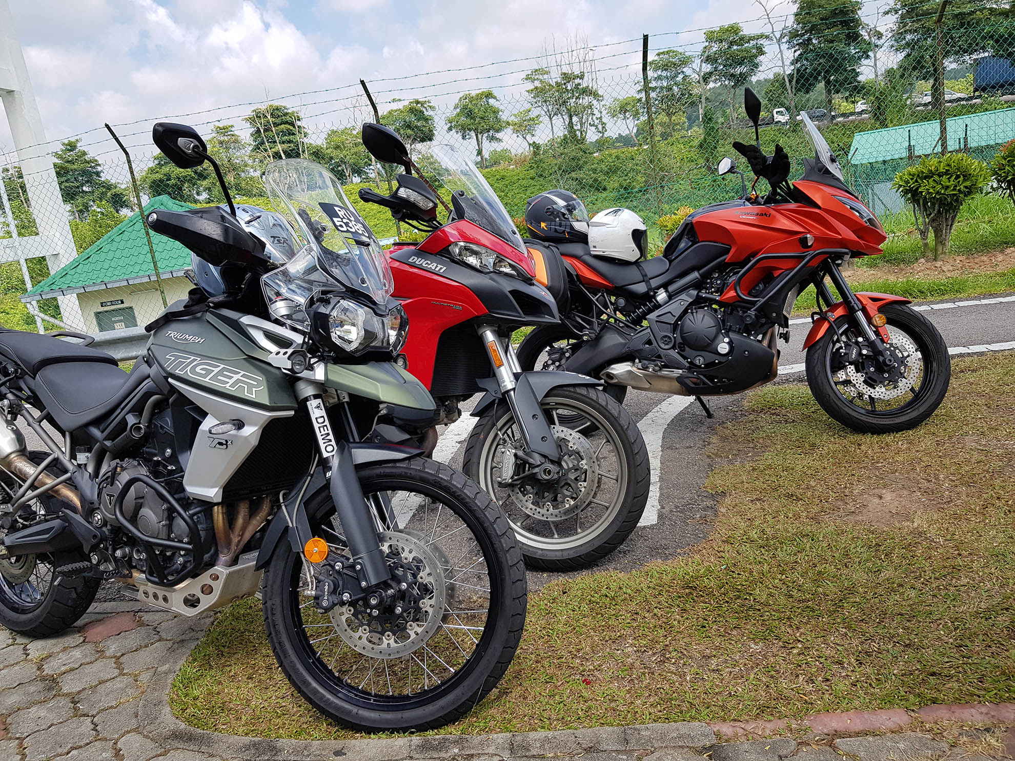 Selesai makan dan bersembang, kami sambung membelek motor masing-masing, perkara biasa bagi “Mat Motor”. Kalau dah minat motor tu, belek-membelek ni memang acara rutin ketika berjumpa sambil melihat dan berbincang tentang jentera dan gajet-gajet tambahan lebih-lebih lagi jika motosikal itu ditambah dengan aksesori yang mengancam. Ada rakan kita dari Singapura tertarik dengan Ducati Multistrada 950 dan Triumph Tiger XcX yang ditunggang oleh admin ENJIN DOTcom. Lebih kurang satu jam setengah kami bersama, tiba masa untuk berpisah. Setelah puas bersembang, kami pun meneruskan perjalanan pulang ke destinasi masing-masing. Diharap ada lagi jemputan atau perjalanan dari rakan-rakan kita bersama admin ENJIN DOTcom dimasa akan datang.