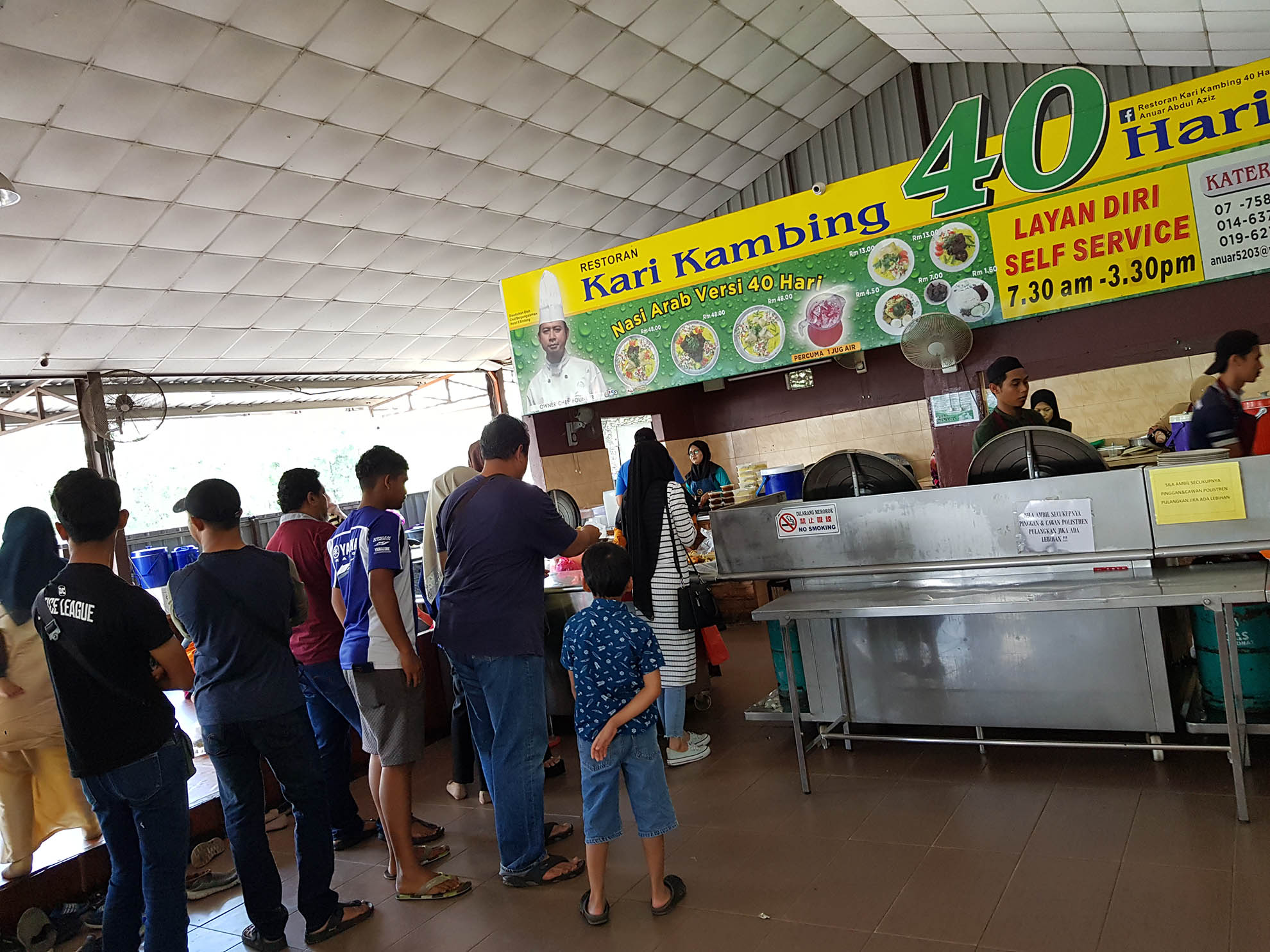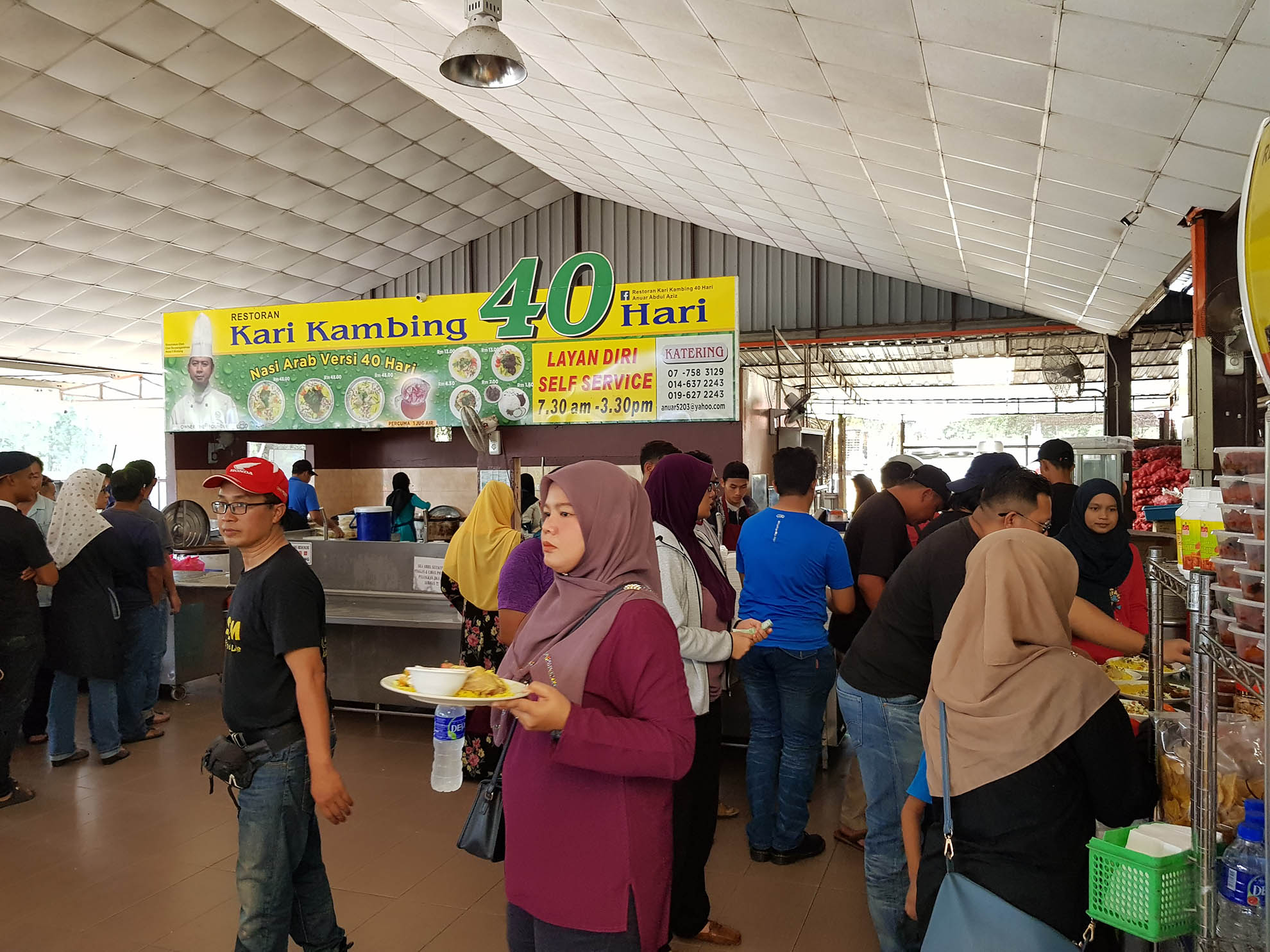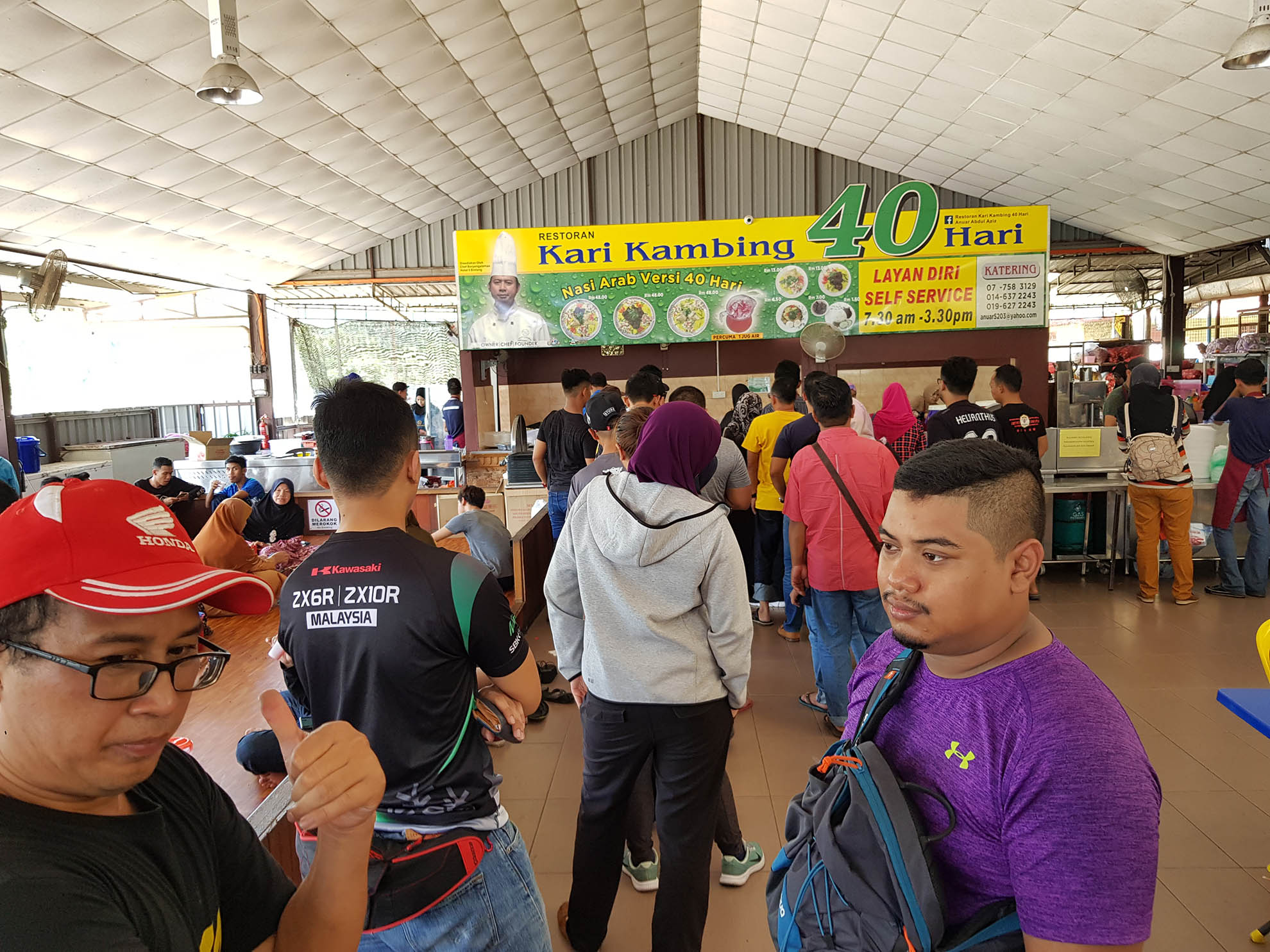 Restoran ini adalah nama yang tidak asing lagi bagi majoriti penunggang dan pengembara di Malaysia. Restoran Kari Kambing 40 Hari boleh dikatakan hampir penuh pada setiap hari minggu dengan pengunjung. Ada beberapa pilihan hidangan yang ditawarkan iaitu hidangan secara individu atau pun hidangan dalam dulang yang boleh dikongsi bersama.