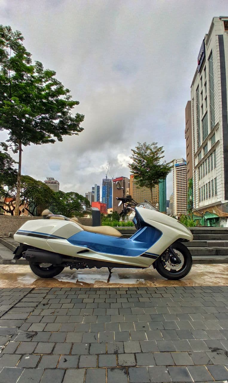 Sekali ia lalu sahaja didepan orang ramai pasti ada mata memandang, paling sukar hendak mengenali jenama atau model skuter jenis apakah ini.Itu lah yang terjadi apa bila admin memulakan perjalanan dari ibupejabat Hong Leong Yamaha Motorcycle di Sungai Buloh.Skuter ini adalah dari model Yamaha CP250 Maxam ia popular di negara Jepun.Kalau di sana budaya fashion bike amat kuat hingga terdapat bermacam-macam gaya skuter ini digayakan salah satunya adalah Cp250 Maxam ini. Model ini dibawa terus dari Jepun ke ruang pameran Hong Leong Yamaha Motor Sdn Bhd di Sungai Buloh.