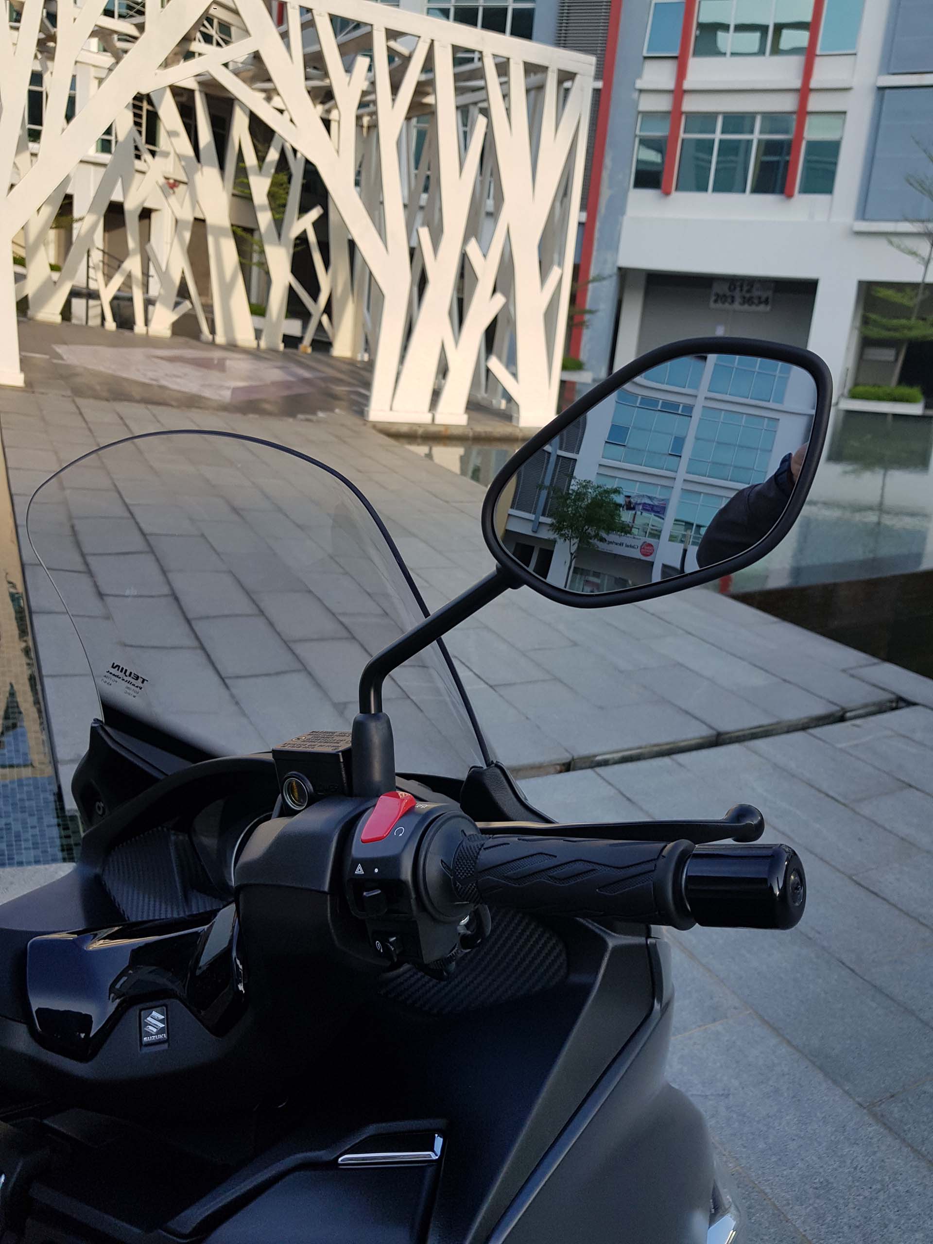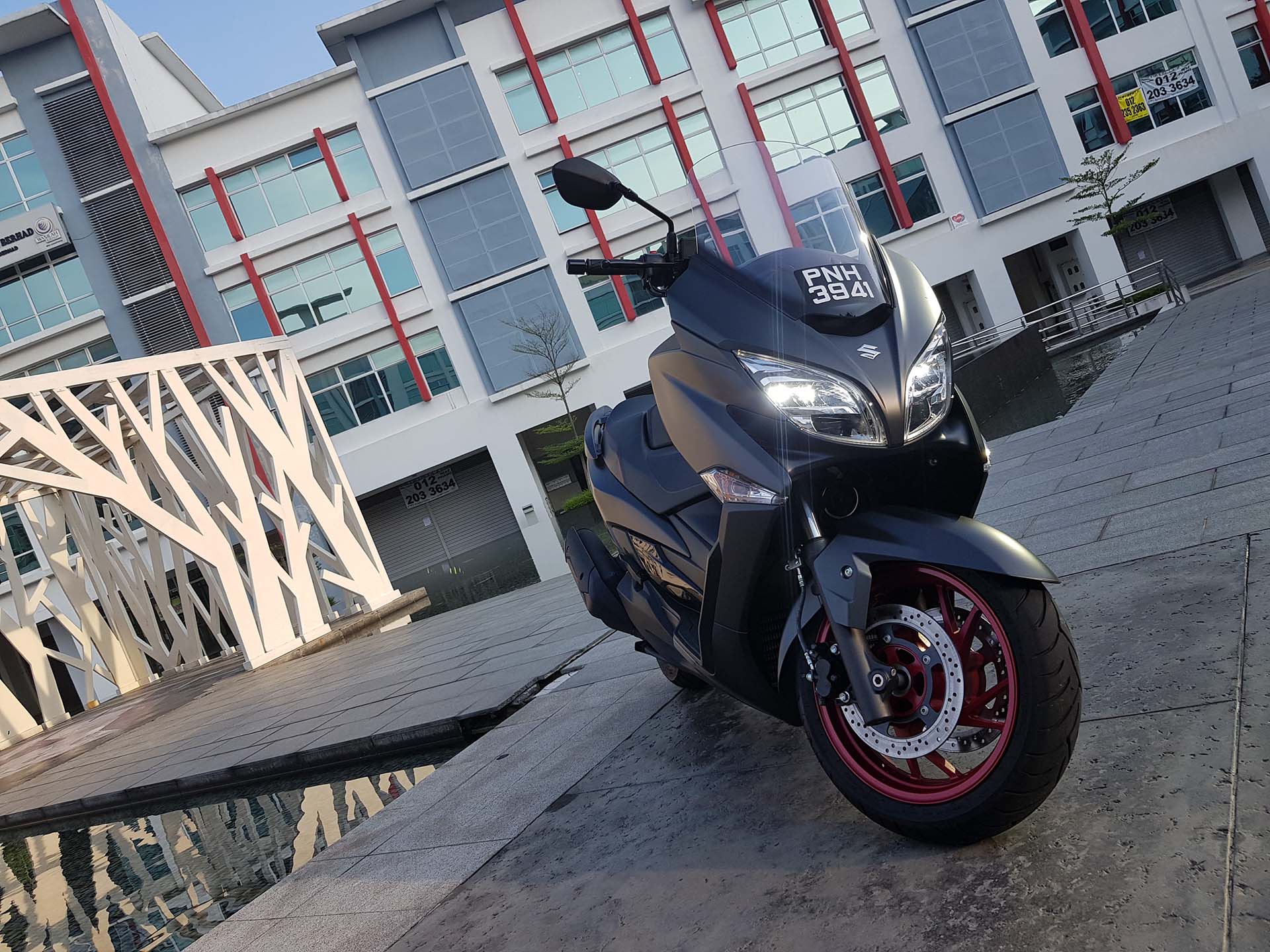 Suzuki Burgman pilihan terbaik Eksekutif Muda Suzuki Burgman merupakan antara skuter bersaiz sederhana yang popular di Europe dan juga Amerika. Suzuki Burgman atau juga dikenali sebagai Skywave di kebanyakan pasaran luar negara mempunyai variasi dari 125cc hingga 650cc. Namun di Malaysia hanya model 400cc di perkenalkan di penghujung 2017. Ketika mula mula saya lihat Suzuki Burgman ini, saya berimiginasi sebagai seorang eksekutif berpakaian pejabat dan bertali leher ke pejabat dengan bergaya memintas kereta yang tersangkut di dalam kesesakan di awal pagi. Memang rasa begitu sesuai dimiliki oleh eksekutif muda yang inginkan kebebasan dan juga pantas menyelesaikan tugasan dan mensyuarat luar dengan segaknya. Dengan gaya yang lebih sporty berbanding model sebelumnya, Burgman baru ini lebih ekonomi dari segi penggunaan bahan api. Malah enjin 4 lejang, dohc 4 injap dengan penyejuk cecair ( euro 4 compliance ) boleh bertindak aggresif ketika diperlukan. Ibarat bila terlambat ke mesyuarat kita masih boleh senyum dengan adanya Si Burgman ini. Lebih lebih lagi di traffic light. Satu lagi yang menarik minat saya adalah keselesaan dan kestabilan ketika menunggang. Saya tiada komplen. Tetapi kebiasaan skuter terkenal dengan kurangnya keselesaan pembonceng kerana kaki terpaksa dibuka dengan lebih luas. Bayangkanlah kalau jarak perjalanan yang jauh mau tak kejang. Tapi tidak dengan Burgman. Suzuki telah merekabentuk kerusi bahagian pembonceng agar kakinya boleh rapat dan ini secara tidak langsung mengurangkan daya rintangan angin berbanding skuter jenama lain. Suzuki sudah terkenal sebagai salah satu jenama yang mempunyai sistem suspensi yang terbaik. Jadi memang tak dinafikan ketika saya uji dilebuhraya karak setiap selekoh diambil dengan mantap. Selesa betul. Kirakan untuk perjalanan jarak jauh boleh katakan terbaik. Visor depan yang agak tinggi juga membantu serba sedikit aerodinamik. Kurang sikit rasa nak melawan angin ketika dalam kelajuan yang agak laju dan saya perhatikan agak membantu jika hujan agak renyai. Saya tak perlu menukar baju hujan kerana seolah air hujan di tepis keluar. Senyum je kurang basah. Selain itu seperti biasa tak lengkap jika Skuter tak dilengkapi dengan soket elektrik di dalam ruangan penyimpanan barang di hadapan dan juga bahagian simpanan barang 42 litre yabg boleh memuatkan 2 helmet di bawah tempat duduk. Ia juga dilengkapi dengan ciri Anti-Lock Braking System (ABS) dan Suzuki Advanced Immobilizer System (SAIS) sebuah sistem immobilizer yang dibangunkan oleh Suzuki sendiri. Tangki minyak yang disediakan ialah 13.5 liter. Dengan kuasa enjin 400 cc, satu silinder, kuasa yang disejukkan cecair dengan suntikan bahan api oleh EFI, Burgman 400 CVT automatik tramission, membolehkan ia mengeluarkan 33 hp pada 7,300 rpm dan tork 36.3 Nm pada 5,800 rpm. Burgmann mengunakan roda 15 inci 120/70-15M/C (56S), tubeless di hadapan dan 13 inci 150/70-13M/C (64S), tubeless di bahagian belakang. Jadi dipendek cerita kalau ada pilihan lain dari segi rekabentuk, keselesaan, teknologi enjin Suzuki Burgman ini antara pilihan yang paling teratas dalam carta sehingga ada saingan lain dalam pasaran .