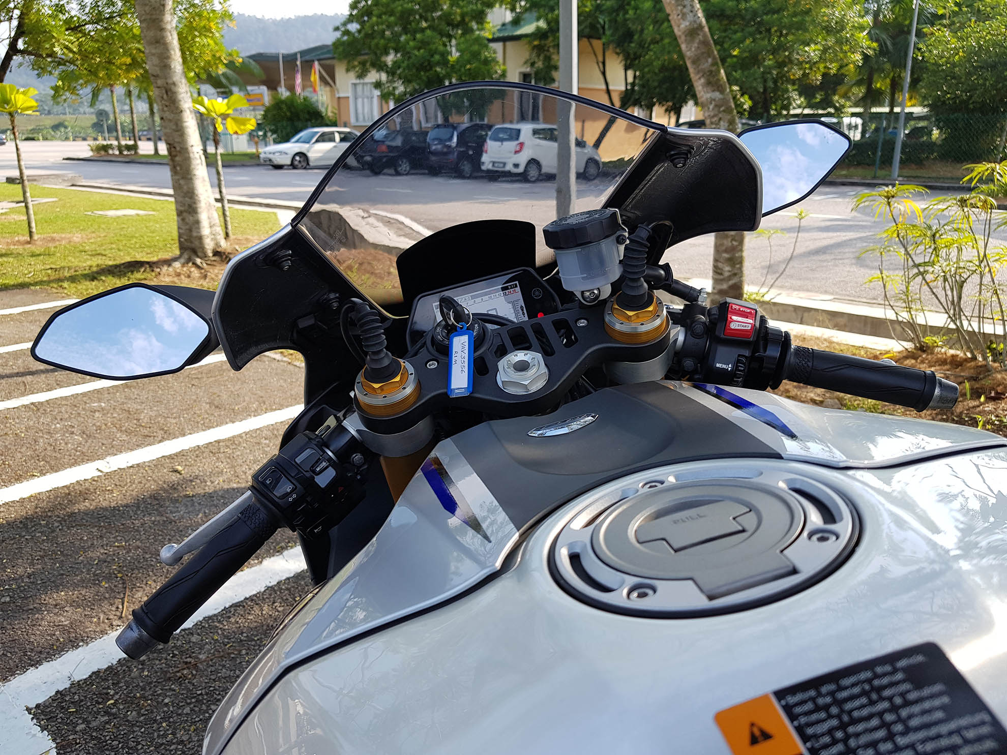 Admin telah berpeluang menguji sebuah model ikonik dan terhebat dari Yamaha. Terima kasih kepada pihak Hong Leong Yamaha Motor yang sudi memberi kepercayaan kepada Mr. Stick untuk mencuba dan melaram semasa bulan Ramadan. Kebetulan cuaca pada bulan puasa ini agak panas, bayangkanlah sebuah mesin satu liter berkuasa tinggi mengharungi kesesakan di sekitar Kuala Lumpur tetapi R1M tetap gagah dan lancar walapun dalam kesesakan jalan raya, selamba beb! Sebuah mesin crossplane yang hebat, mampu mencelah-celah biar pun cuaca panas meluap-luap.Tapi kalau setakat pusing-pusing kat kuala klawang atau bukit tinggi sambil menikmati keindahan alam, boleh berbegor iman kome.