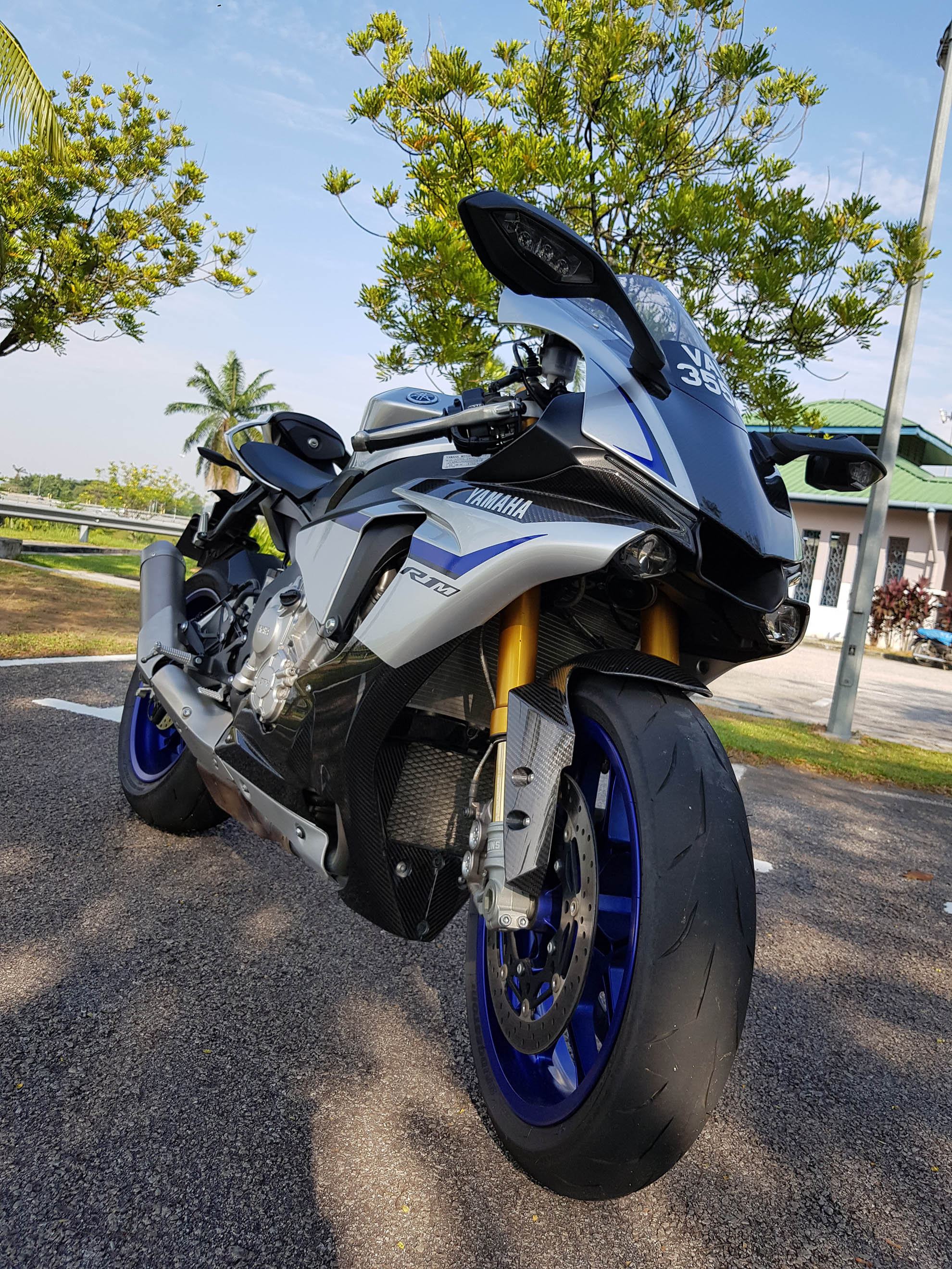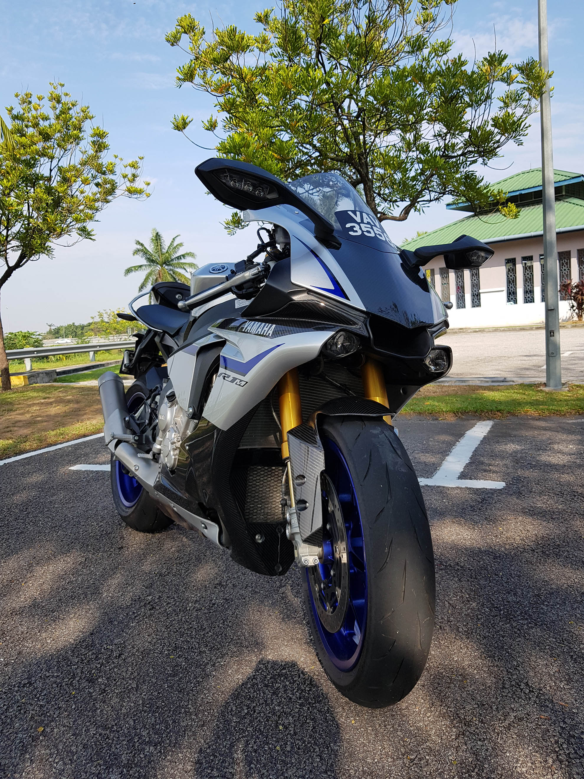 Dilancarkan pada tahun 2015, Yamaha YZF R1M adalah sebuah motosikal yang canggih dan membuatkan banyak jiwa jadi tak tenteram untuk memilikinya. Bagi model tahun 2018, ia menjadi lebih canggih sejajar dengan perubahan teknologi dengan menawarkan pakej elektronik MotoGP yang asli. Ia sebuah mesin yang membuatkan pemiliknya berangan menjadi seperti Rossi. Kemana sahaja admin bawa, pasti banyak mata yang memerhati motosikal berjiwa juara ini. Kebetulan admin pernah memiliki model Yamaha YZF R1 crossplane model 2010 dulu, ternyata banyak juga perbezaan dari Yamaha YZF R1M ini. Posisi menunggang juga agak berbeza dimana jarak hendal agak ke bawah berbanding model terdahulu. Ini menjadikan gaya tunggangan kita lebih agresif ala gaya penunggang MotoGP. Admin ada mencubanya seketika di jalan lurus di lebuh raya untuk mengetahui tindak balas jentera ini. Ternyata Yamaha YZF R1M ini memang pantas hingga tak sedar kita telah melebihi had kelajuan kebangsaan lebuh raya dalam masa yang sangat singkat. Ia bukan sebuah superbike untuk mereka yang baru berjinak-jinak dengan dunia dua roda. Prestasi suspensi Ohlins di selekoh pula tidak perlu dipertikaikan, pengalaman yang sukar dilupakan dan hanya yang kaki koner lipat sahaja yang faham. Pengalaman dan kemahiran dalam menunggang sahaja tidak semestinya cukup ketika kita berada di jalan raya awam yang sememangnya terlalu banyak objek dan kenderaan yang harus diberi perhatian. Berbeza sama sekali dengan keadaan di litar lumba kerana kesilapan yang kecil sahaja boleh membawa padah apabila memgendalikan jentera berprestasi tinggi seperti Yamaha YZF R1M ini. Apa pun, menikmati dan memiliki adalah satu kepuasan yang tertinggi bagi impian setiap peminat motosikal.